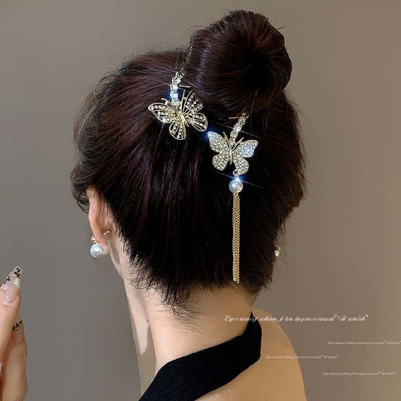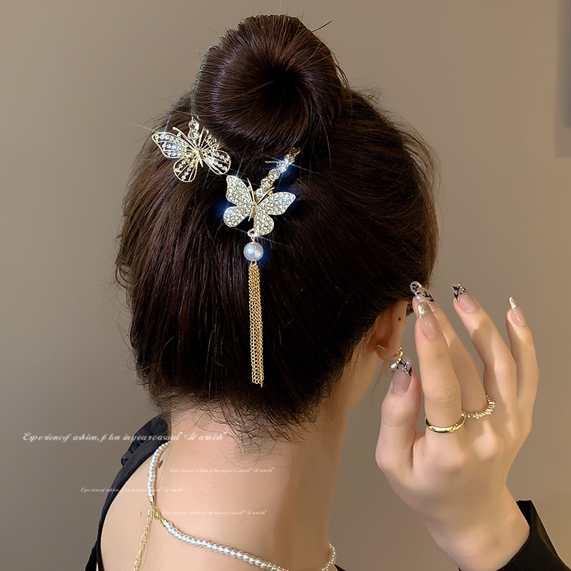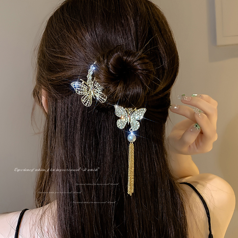 Модная заколка для волос с блестками, бабочкой и кисточкой, женская заколка для задней части головы, прическа, гаджет, закручивающаяся заколка, заколка для волос, головной убор