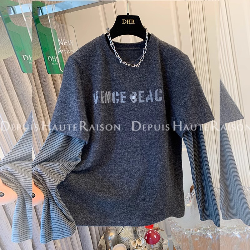 Модная одежда для полных: футболка с американским принтом и имитацией двух деталей, свободная и теплая