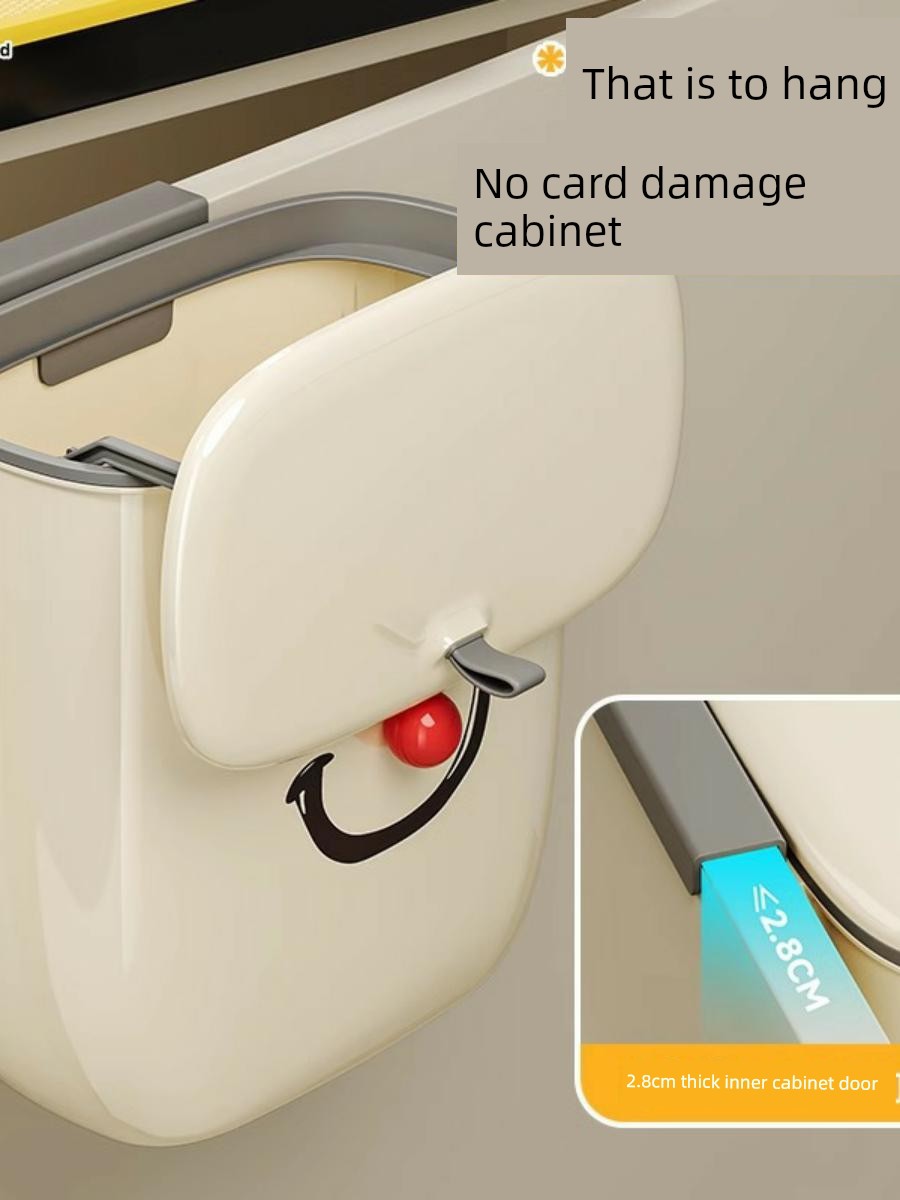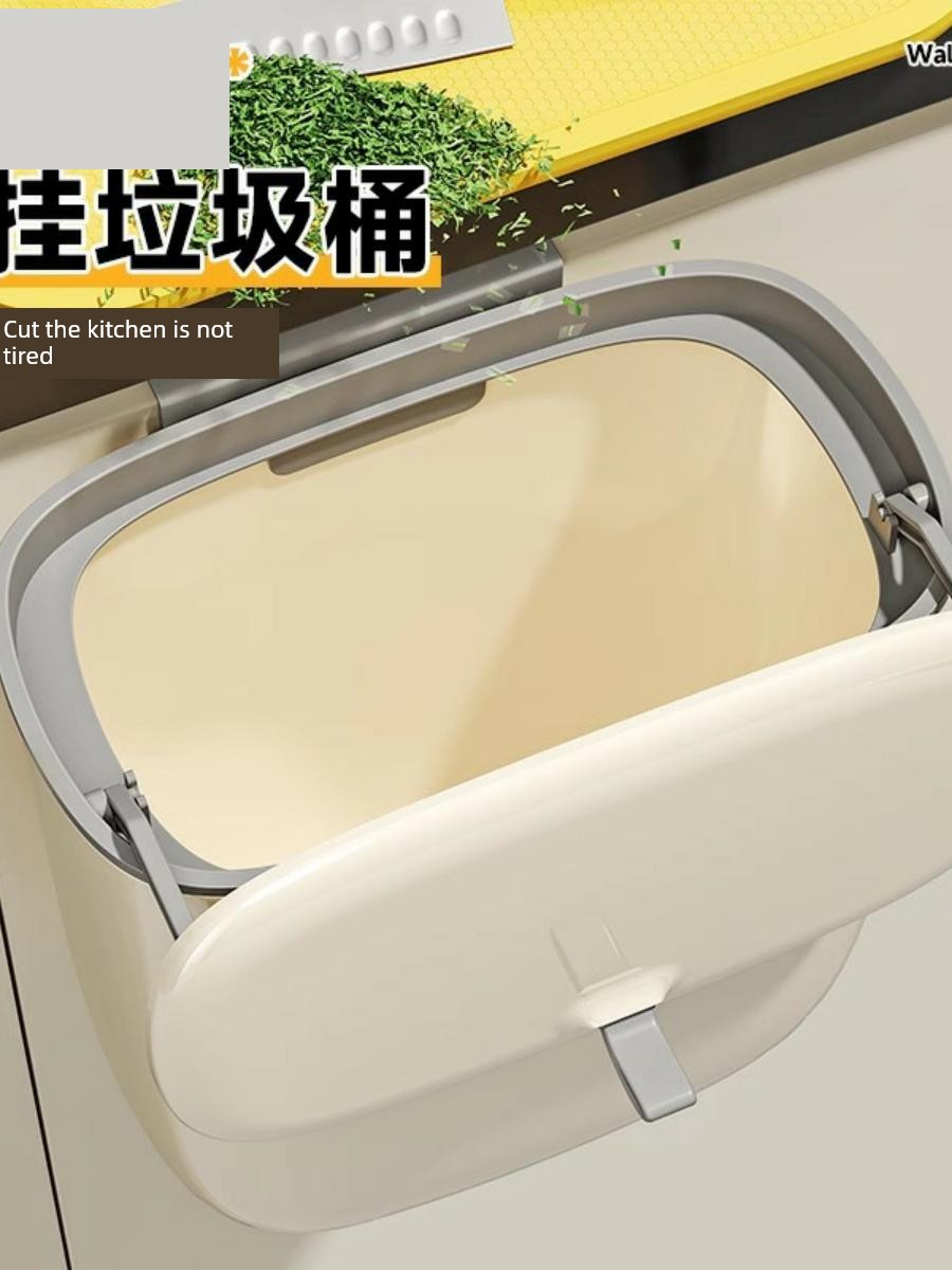 Специальная настенная мусорная корзина для дома, кухни, ванной комнаты, без сверления, подвесная, кремового цвета, большая вместимость с крышкой, мусорное ведро
