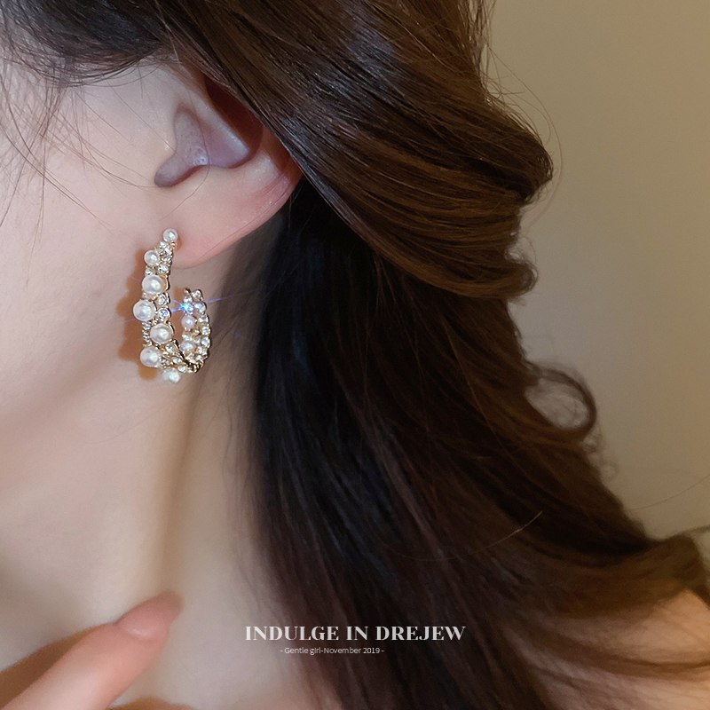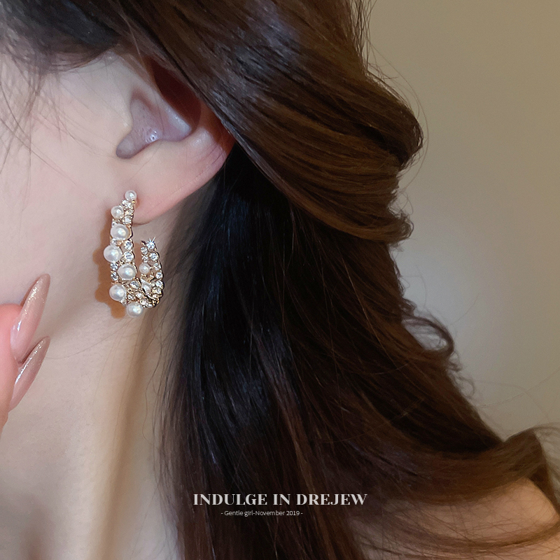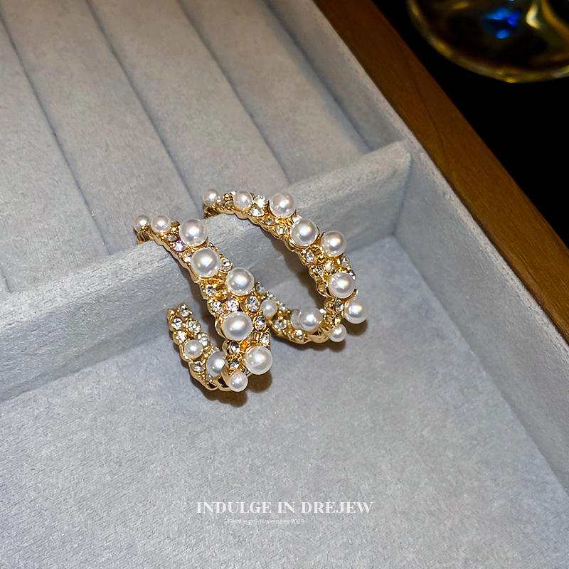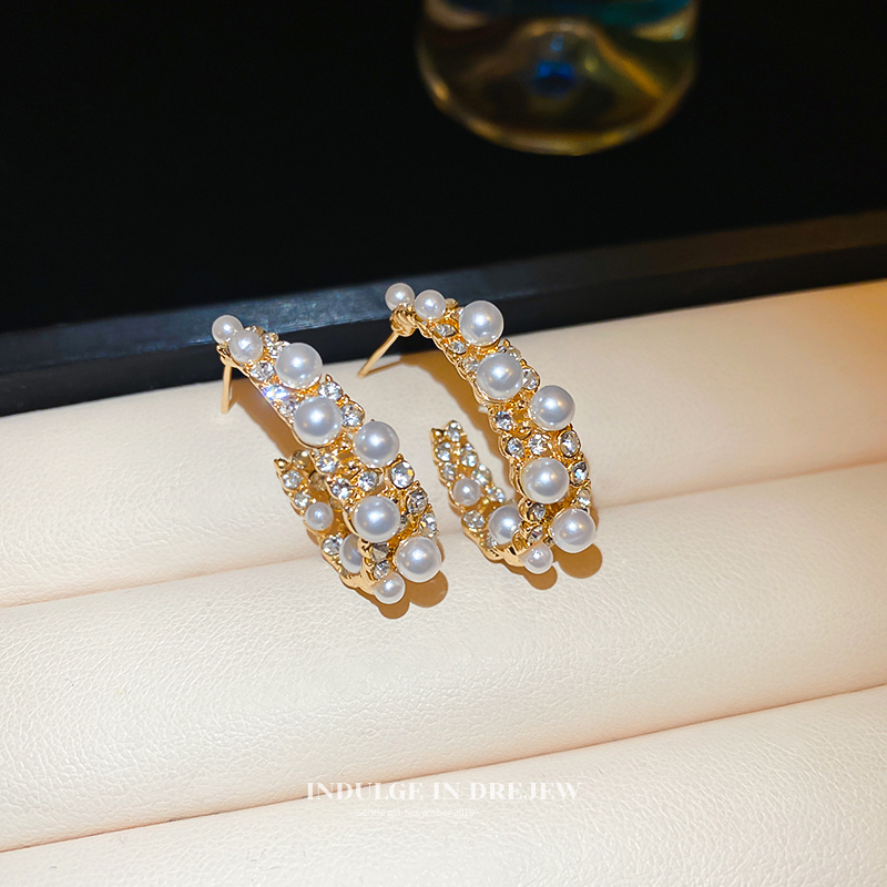 Элегантные серьги-пусеты с жемчугом и бриллиантами в стиле ретро, в форме буквы С, доступная роскошь, модные, элегантные, щедрые, новинка, преувеличенные серьги для женщин