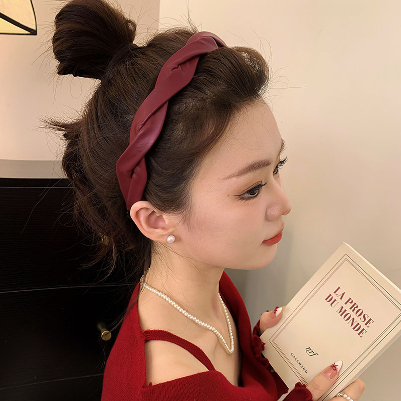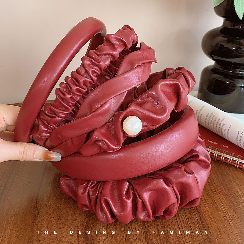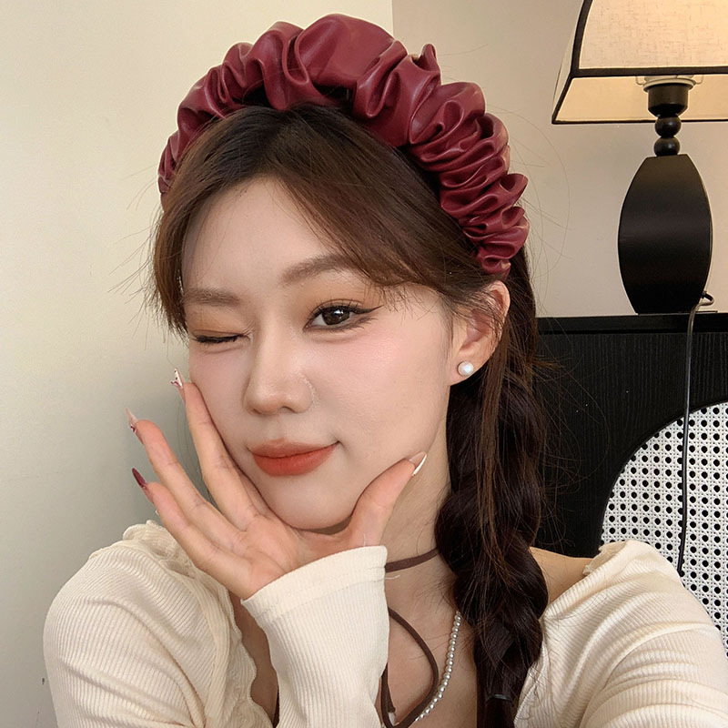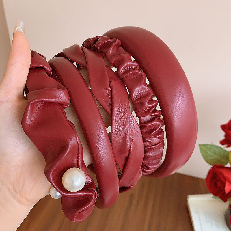 Французский стиль, ретро, красная кожаная повязка на голову, женская, новинка 2024, высокая верхняя часть черепа, фиксатор для волос, повязка на голову, заколка для мытья волос, головной убор