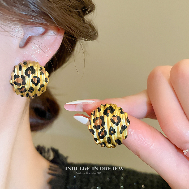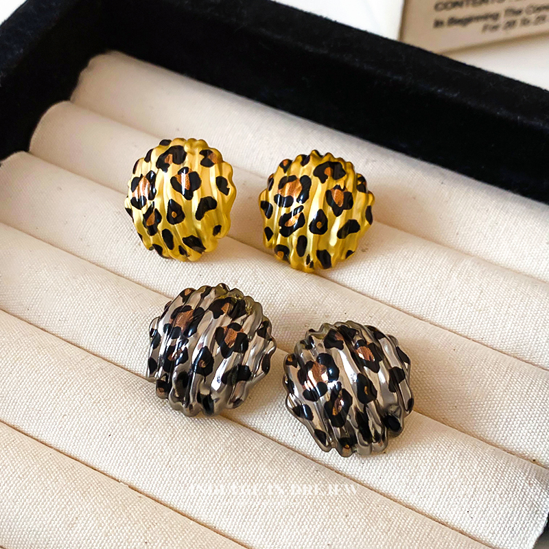 Французские серьги-гвоздики с леопардовым принтом и изогнутой формой - Ретро-люкс, стиль 'Инстаграм', уникальный темперамент