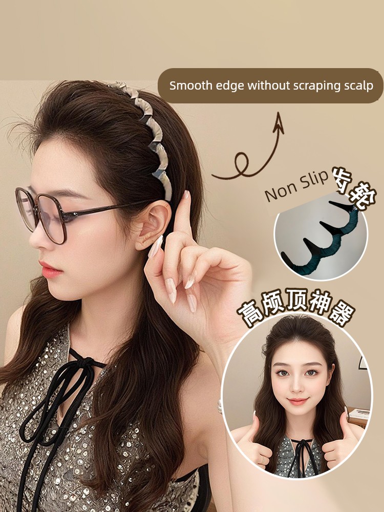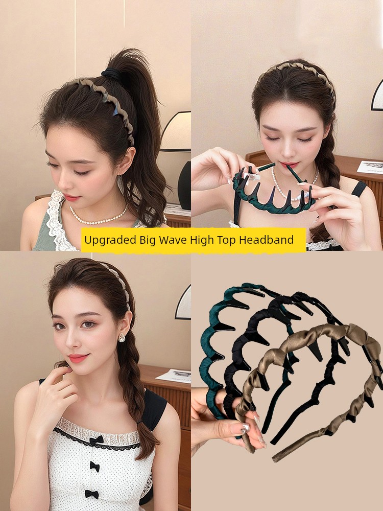 Французский стиль Зубчатый тканевый ободок волна Женская умывальная нескользящая заколка для волос 2024 Новое поступление Высокий ободок для головы череп