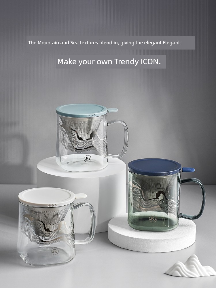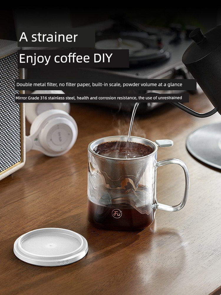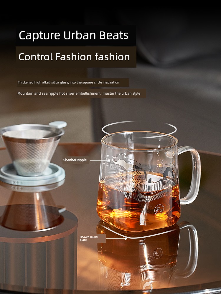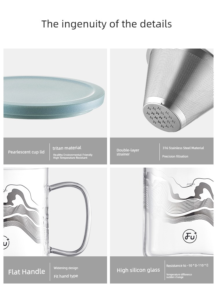 Стеклянная чайная чашка Fuguang Fu + с ручкой, разделение чая и воды, чайная чашка для мужчин и женщин, новинка 2024 года, кофейная чашка с крышкой