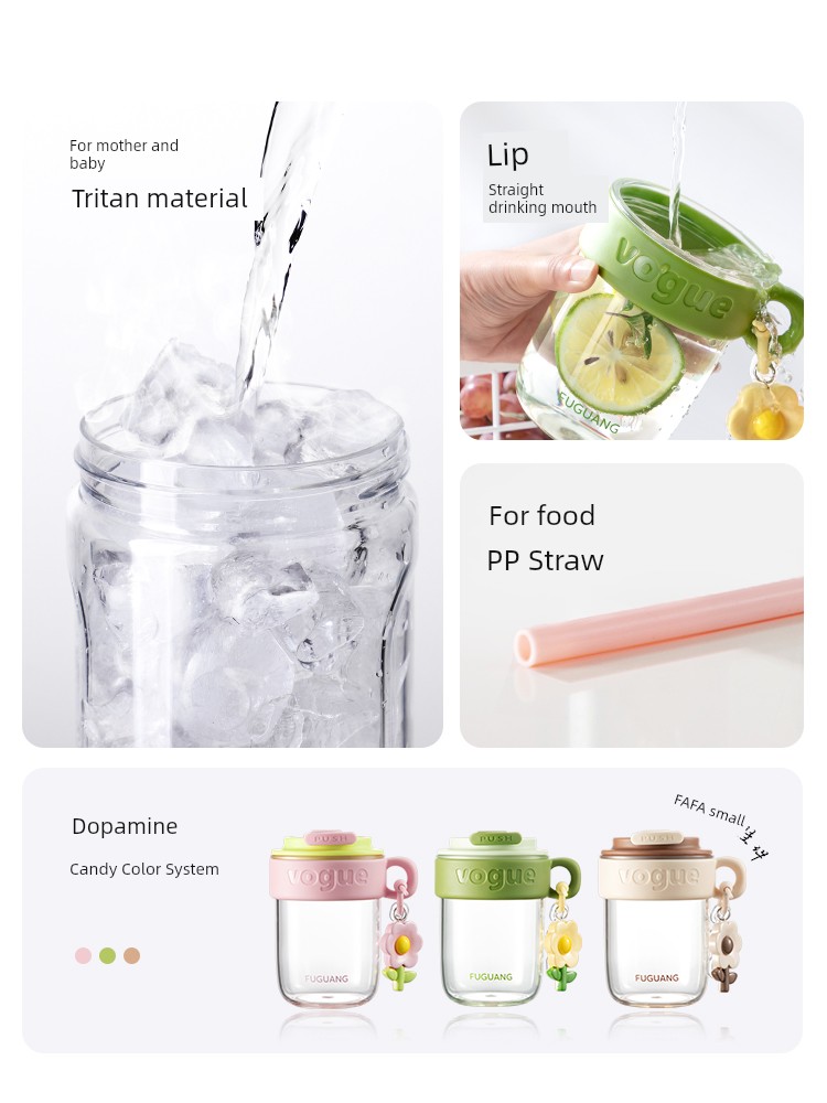 Пластиковая чашка Фугуан для девочек Tritan с соломинкой, милая
