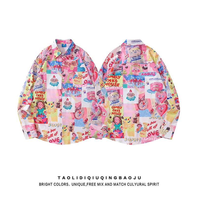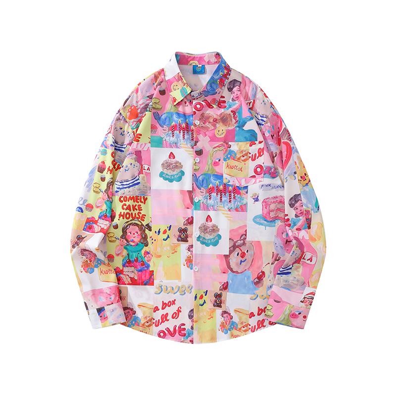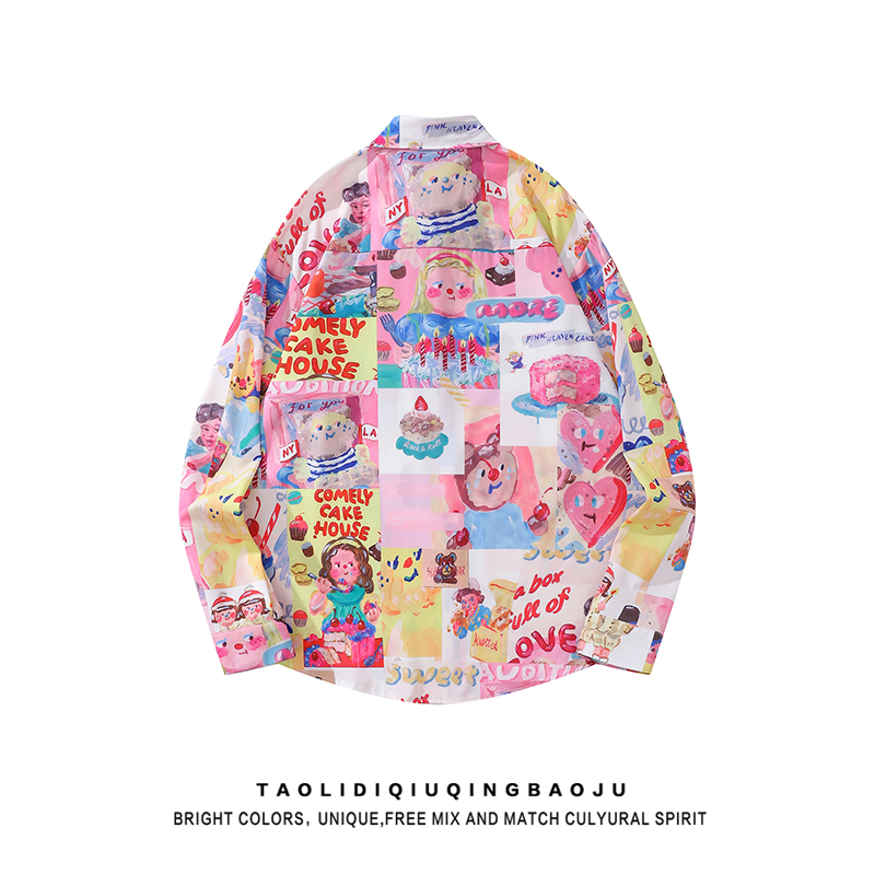 Забавная футболка с длинным рукавом, свободная, с полным принтом, мультяшная