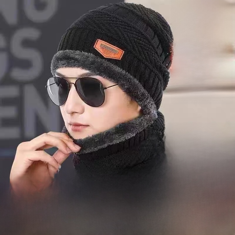 Мужская зимняя вязаная шапка с мехом, утолщенная, защита от холода, минус