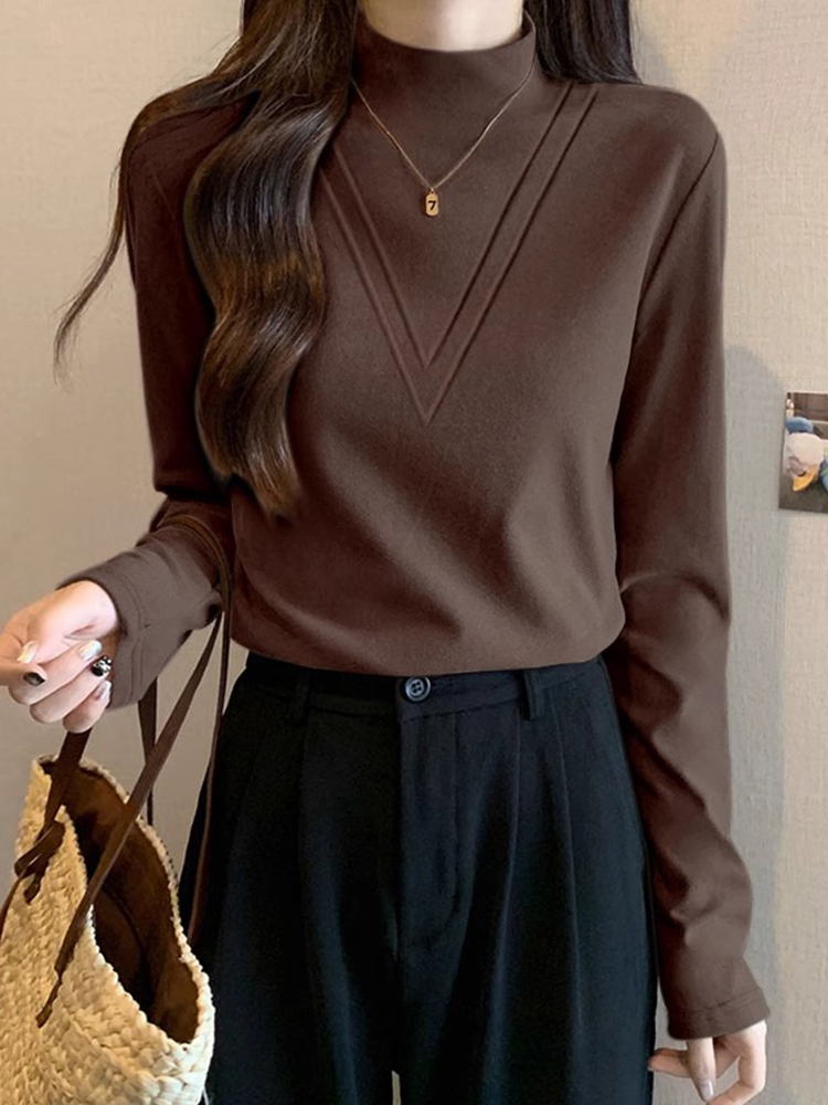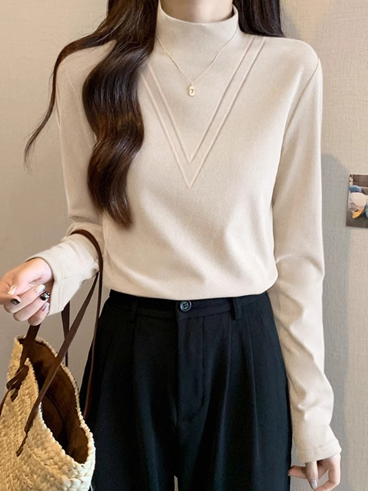 Серый водолазка с двойной стороны дрэлон рубашка женская европейская станция 2025 осень-зима новая поступление тонкая теплая футболка с длинным рукавом