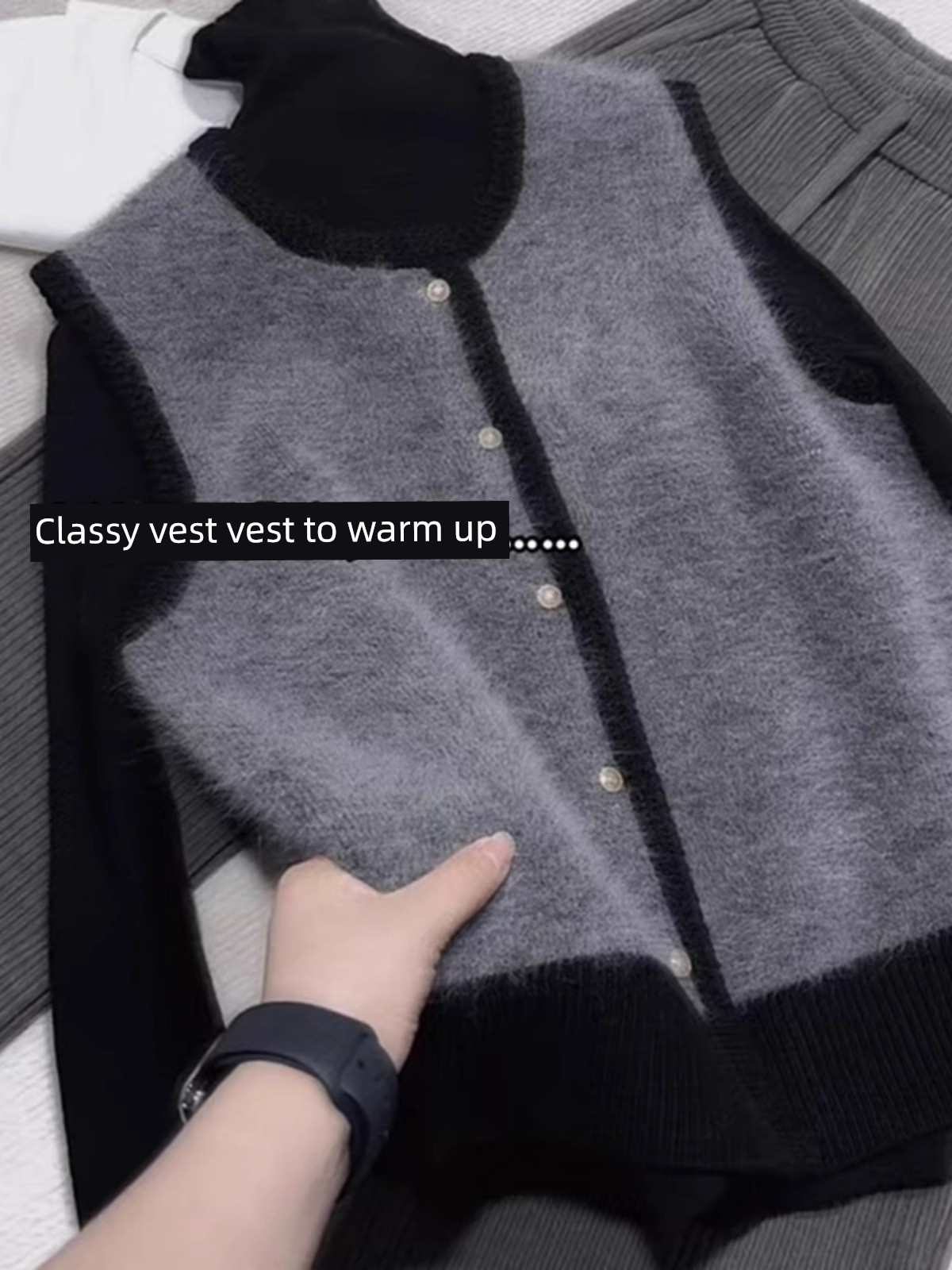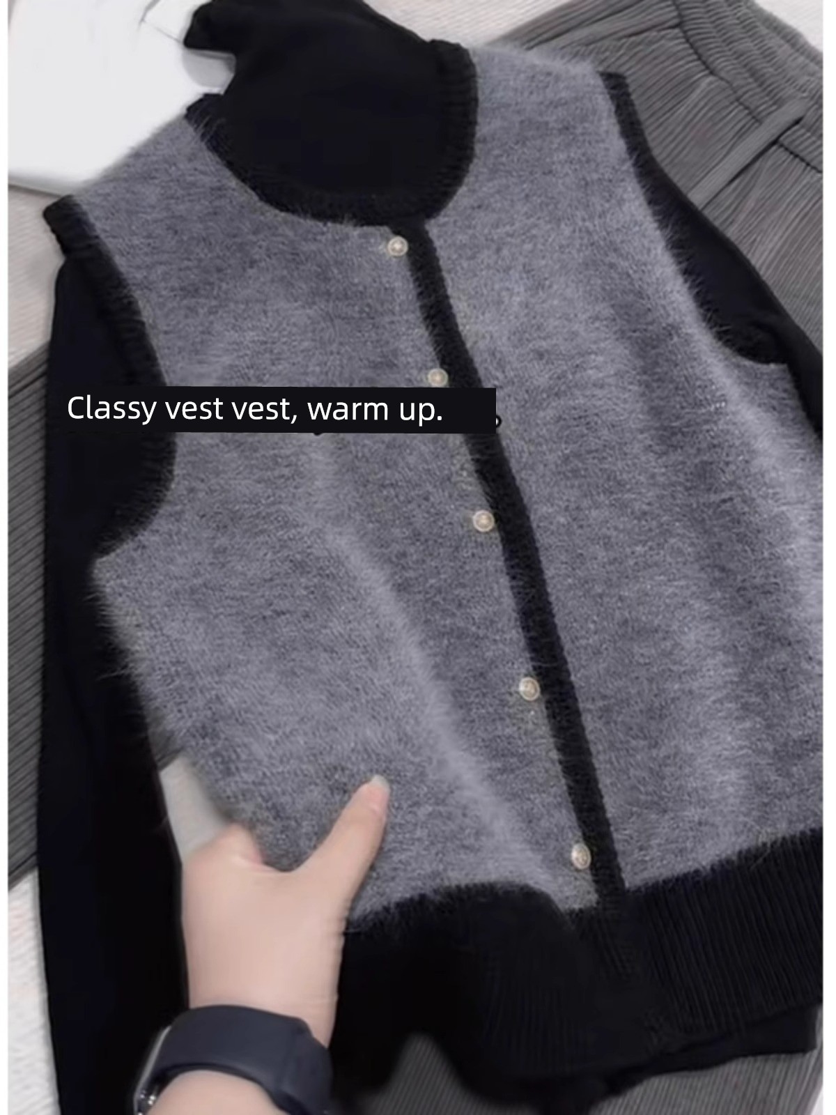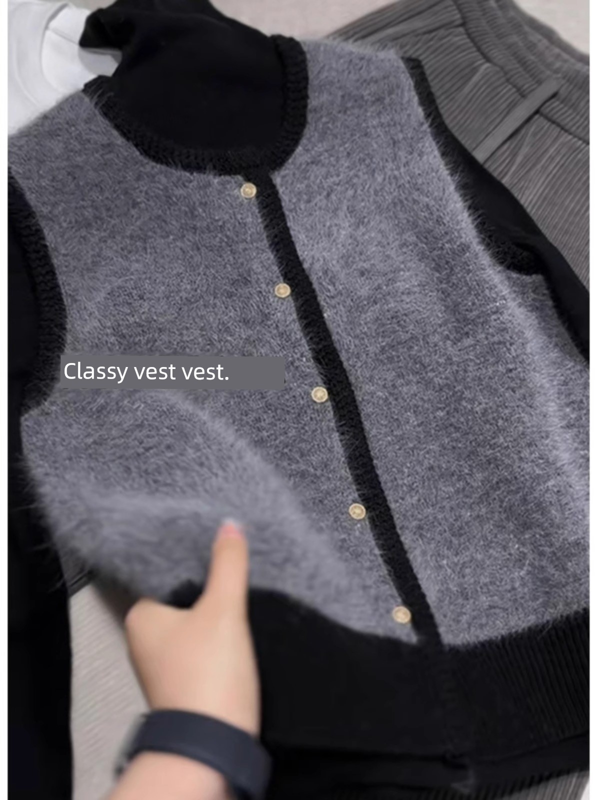 Серый минималистичный высококлассный жилет с темпераментом, однобортный, с цветовым сочетанием, женский, весна-осень 2025, новинка, мягкий кашемировый свитер