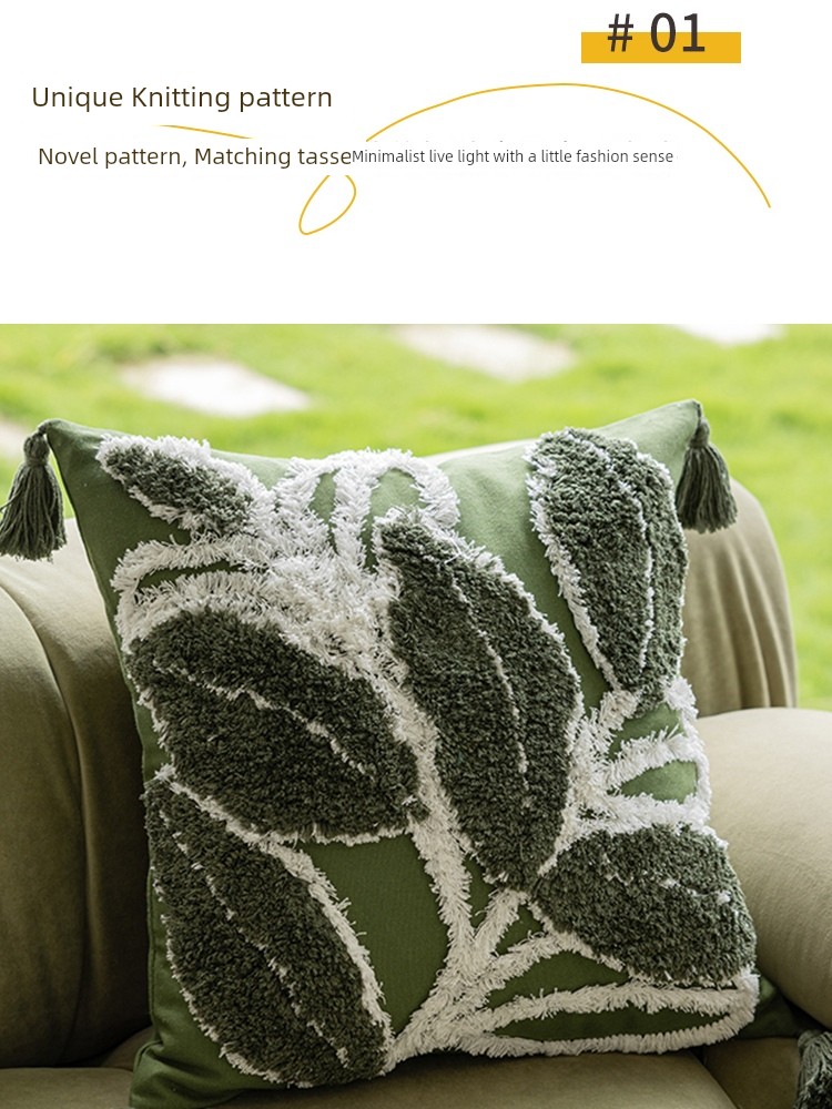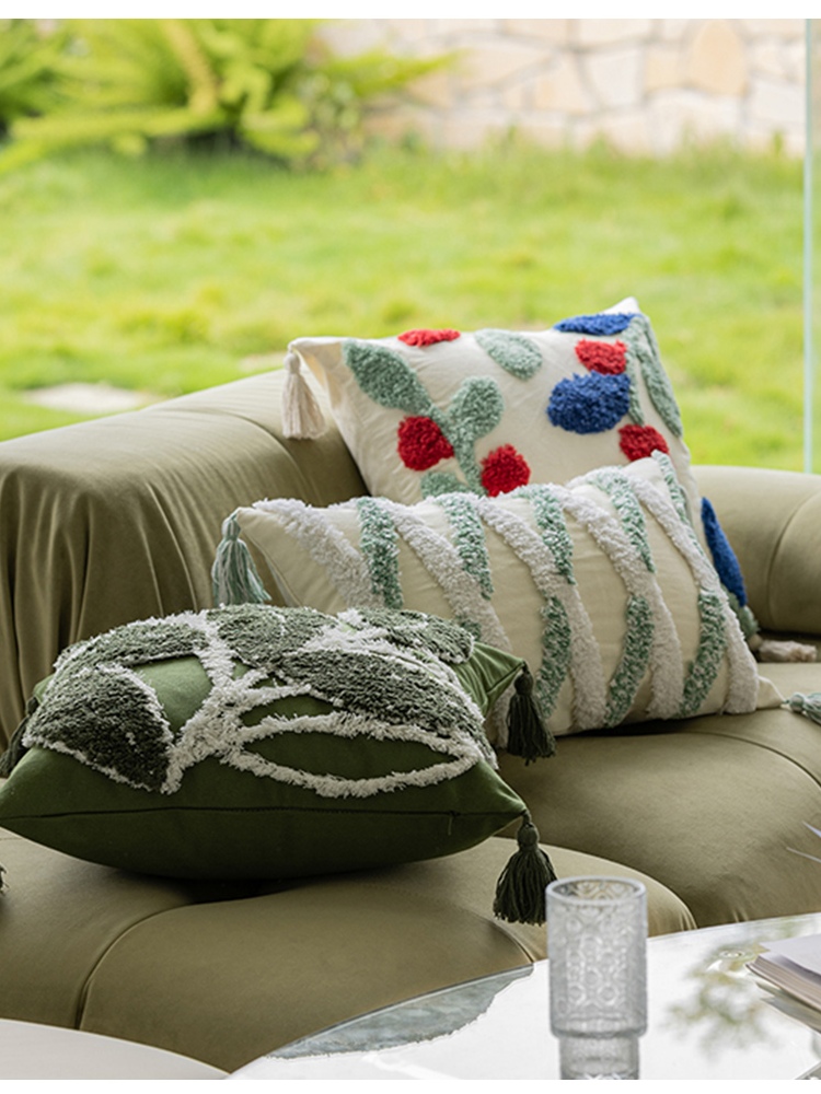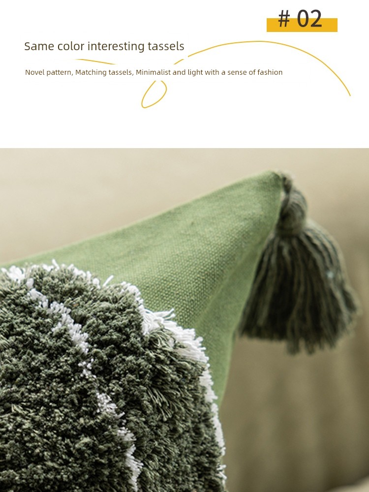 Зеленая подушка с кисточками в стиле бохо, подушка для дивана, гостиная, плюшевая наволочка