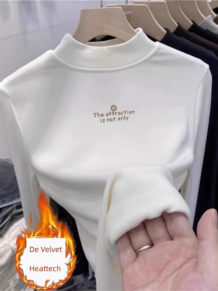 Новая осенне-зимняя фланелевая водолазка Dralon с полувысоким воротником, женская стройнящая рубашка кремового цвета с длинным рукавом