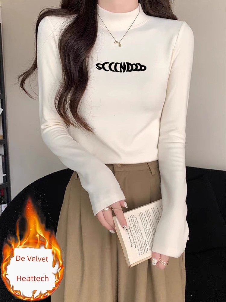 Женская нижняя рубашка-полуводолазка, осенне-зимняя одежда, дралон, утолщенная футболка с длинными рукавами, флисовая подкладка, шлифованная, средний воротник, нижняя одежда, блузка "Isn Fashion"