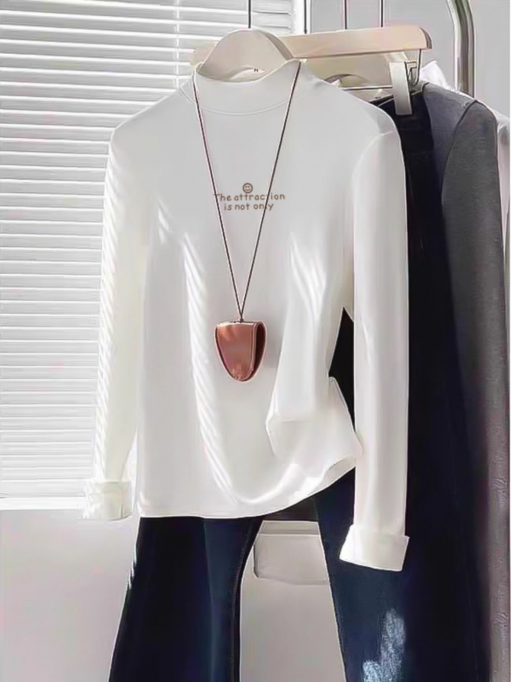 Женская нижняя рубашка с полуворотником, весна, осень, зима, новинка, длинный рукав, футболка из дралона, плечо, легко сочетается, утолщенное теплое пальто