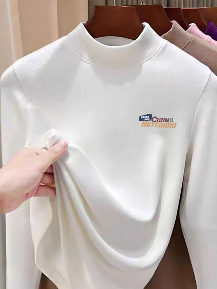 Футболка с полуворотником Женская Весна и Осень Утолщенная Внутренняя Одежда Новое поступление Двусторонняя Далань Средний воротник Стойка Воротник Лонг Сливес Футболка Топ