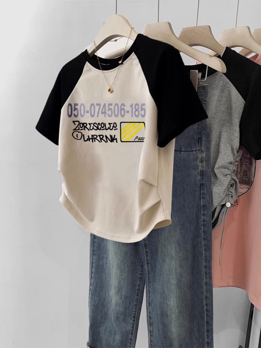Шикарная футболка из чистого хлопка в стиле Гонконга, с коротким рукавом, реглан, для женщин, новинка лета 2025 года, большие размеры, топ для дам