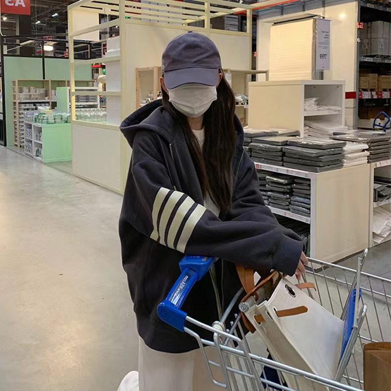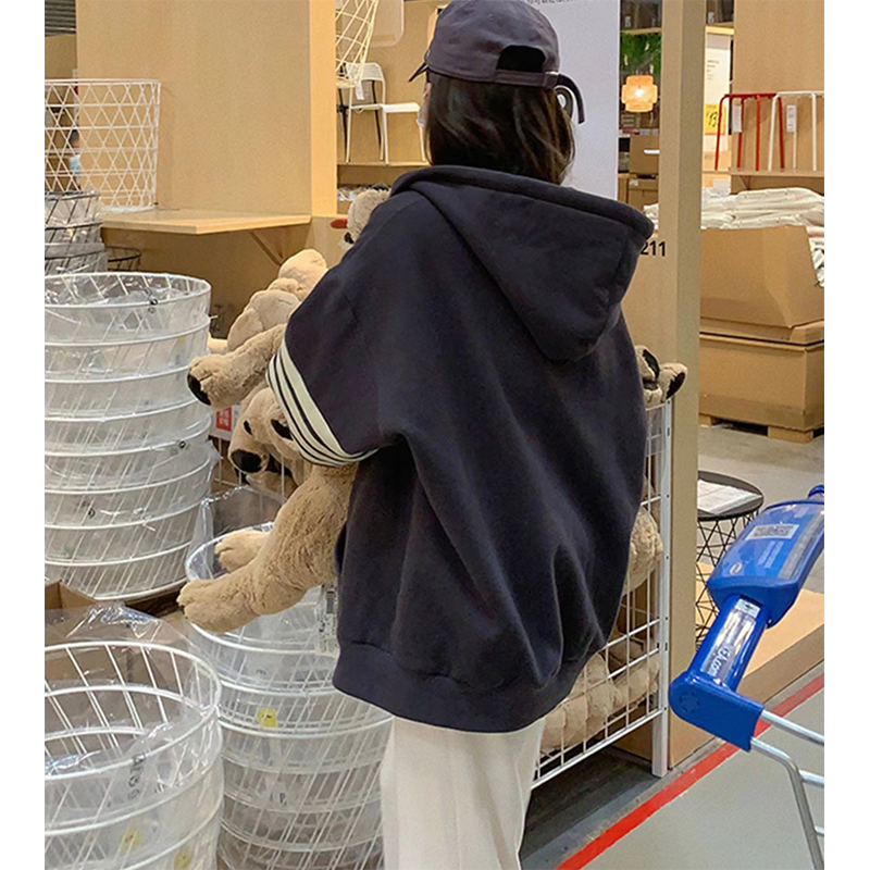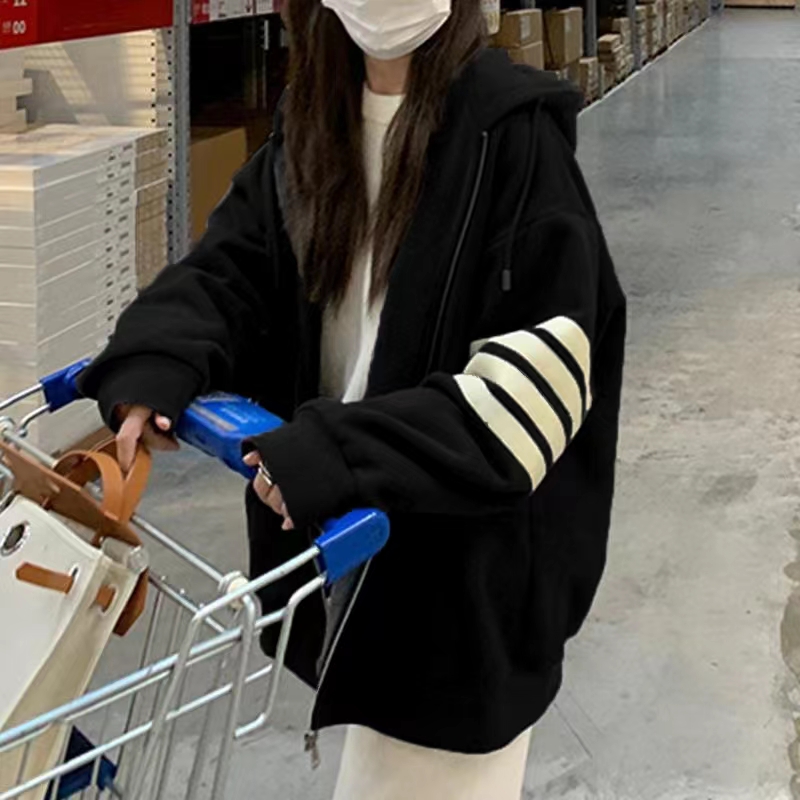 Толстовка с Капюшоном Женская Весна и Осень Тонкая Оверсайз Приспущенное Плечо Свободный Кардиган в Стиле BF Ленивый Бархатный Стеганый Утолщенный Пальто Топ