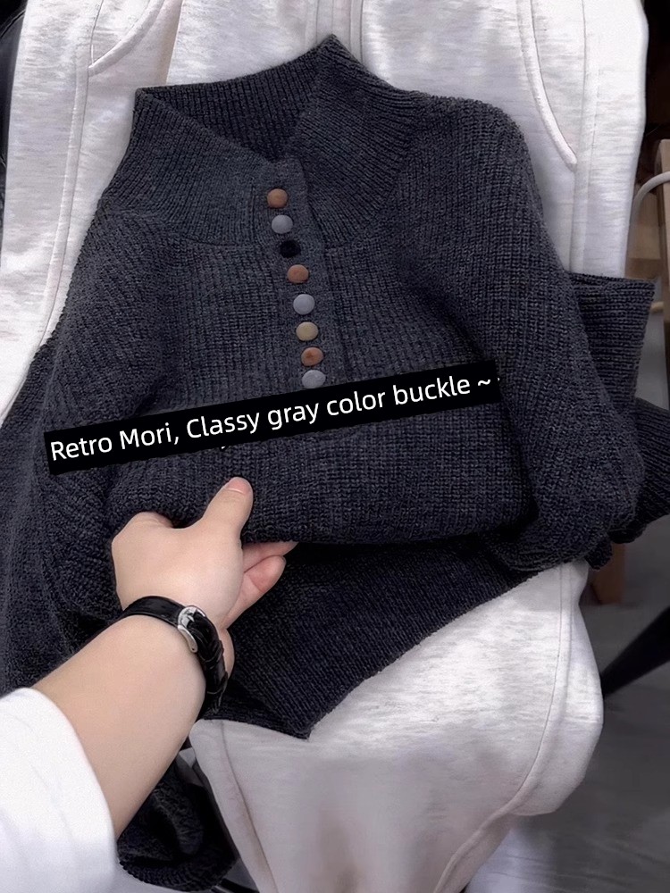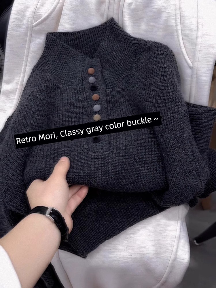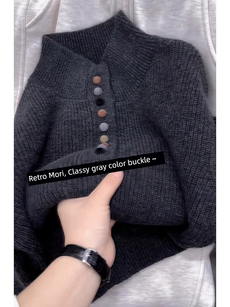Женский элегантный вязаный свитер в стиле «idle» с воротником-стойкой и пряжкой, новинка весенне-осеннего сезона, модный, молодежный, шикарный топ