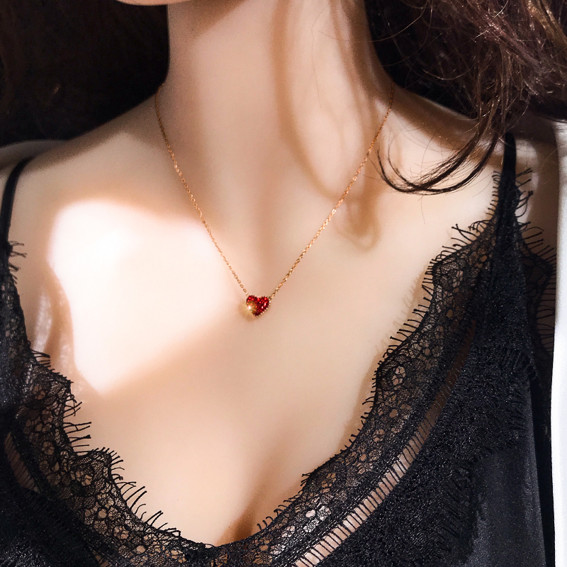 INS Женское ожерелье с блестящим кулоном из розового золота 18 карат и титановой стали