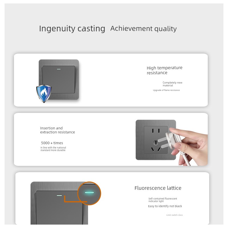 Международная электротехника для дома настенная клавишная розетка 86 типа, матово-серая, скрытая, с одним открытым переключателем, одинарная, 5 отверстий