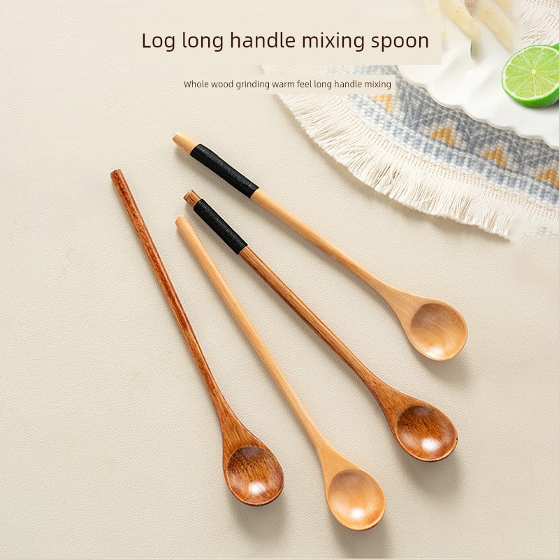 Японская маленькая деревянная ложка, ложка для меда, деревянная обернутая ложка для супа, ложка для перемешивания с длинной ручкой, ложка для кофе, десертная ложка, старая краска, массив дерева