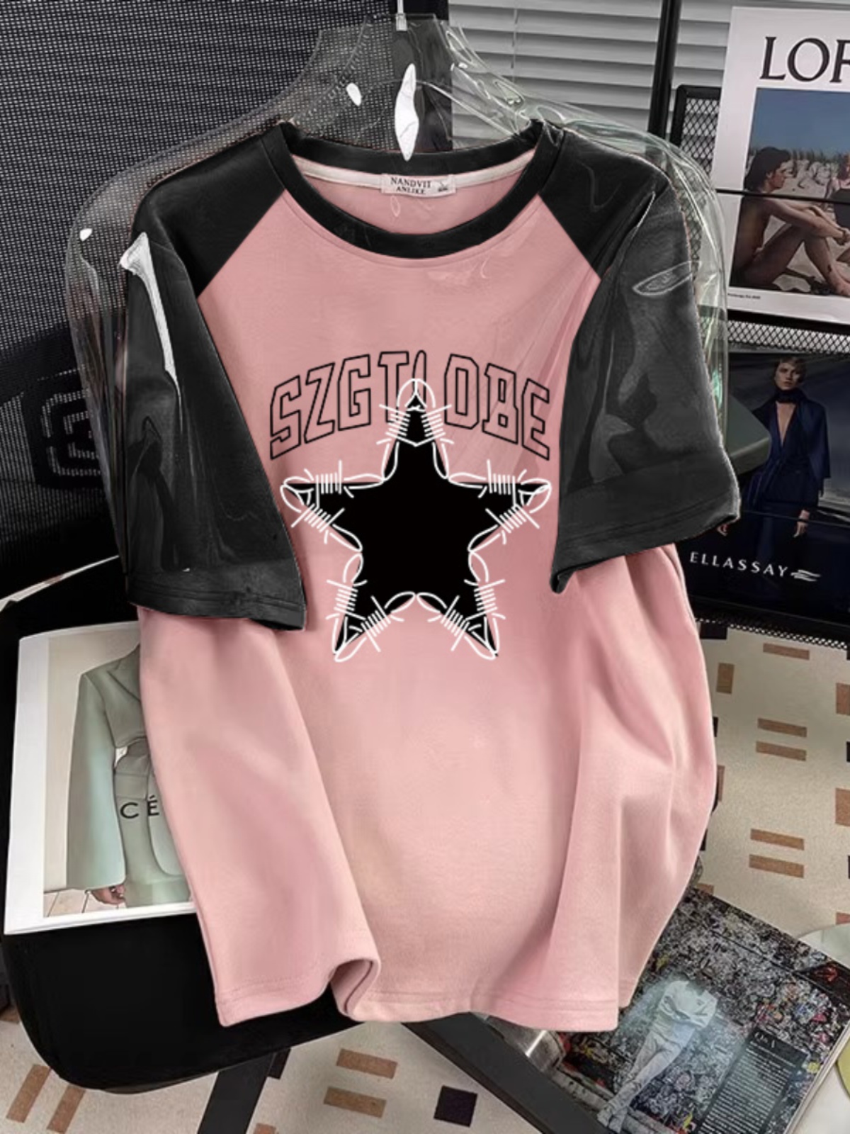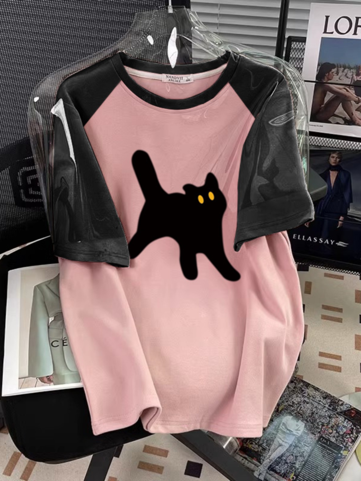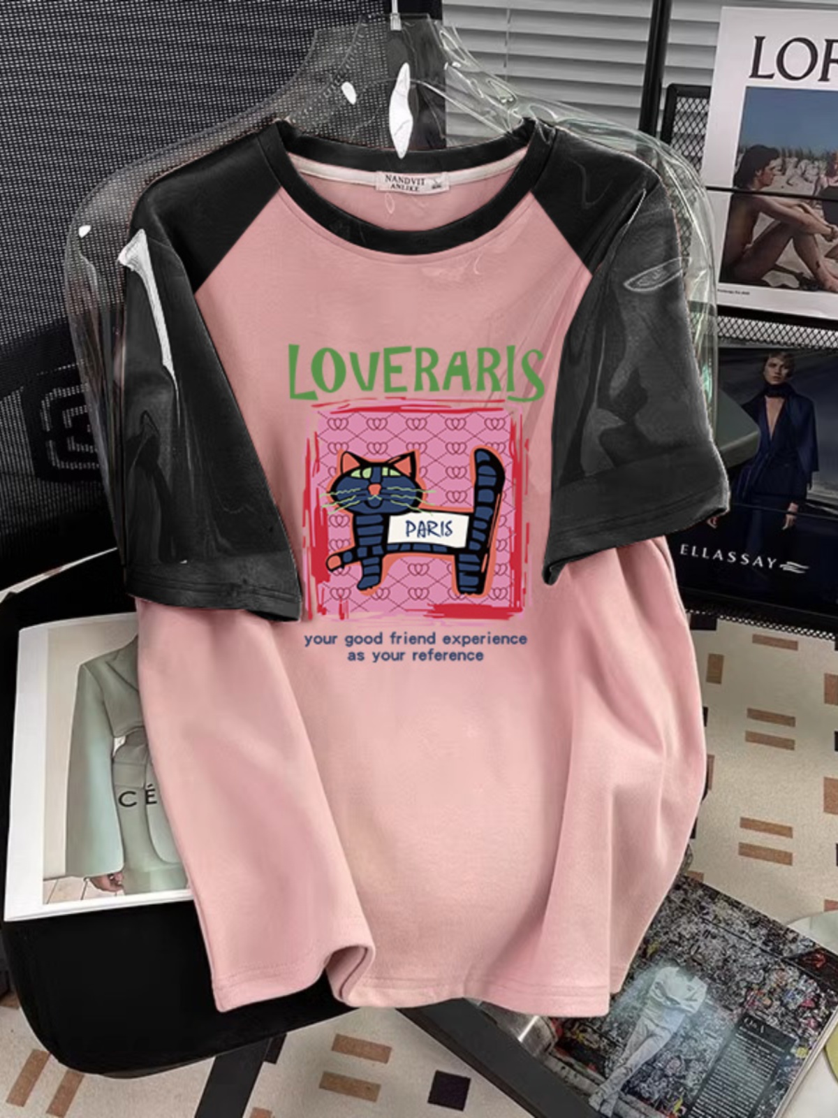 Сладкие и крутые топы с рукавом реглан в японском стиле 2025 Новинка Оверсайз хлопковая футболка Женская модная нишевая модель для подруг Футболка с коротким рукавом Лето