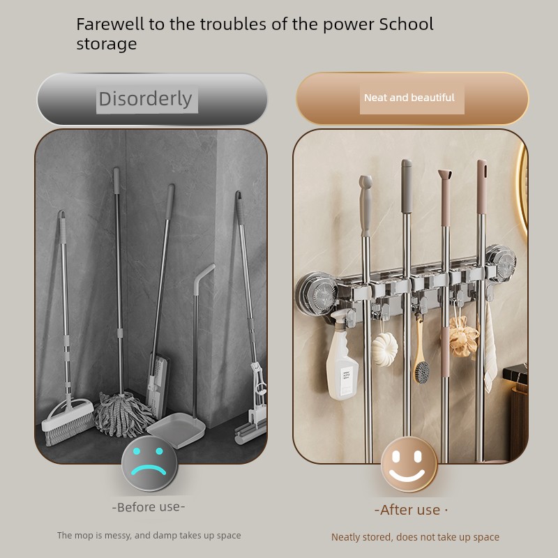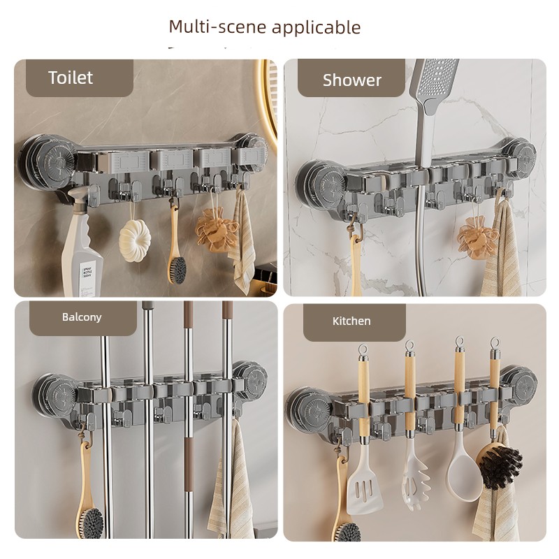 Jie'an Зажим с присоской для швабры, настенный, для ванной комнаты, без перфорации, зажим для швабры, веника, крючок для фиксации, фантастический
