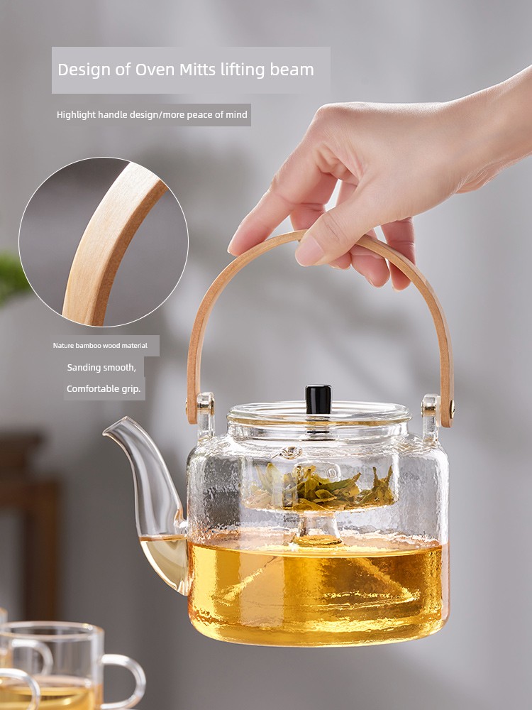 Jie'an Xi Чайник из боросиликатного стекла, чайник для кипячения воды, чайник с петлевой ручкой для дома, высокотемпературный керамический чайник