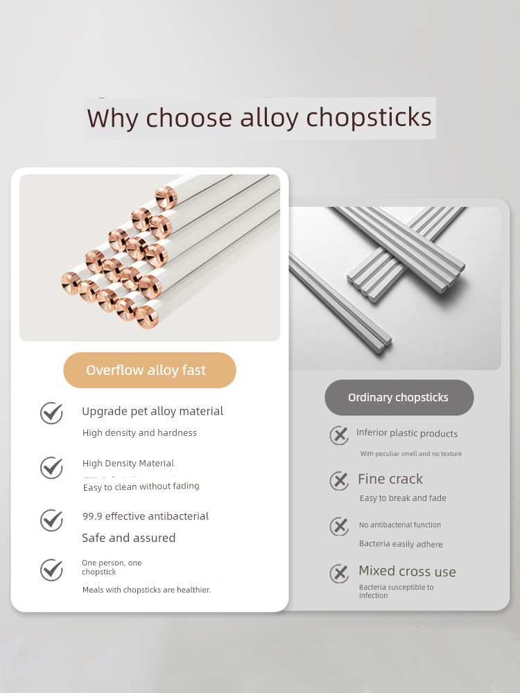 Jieanxi Высококачественные антибактериальные и противоплесневые столовые палочки из сплава Семейные жаропрочные столовые приборы для дома Столовые палочки для одного человека