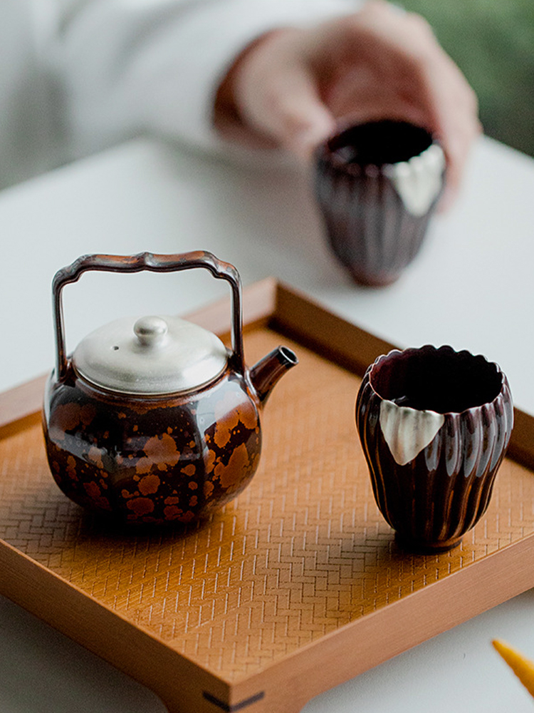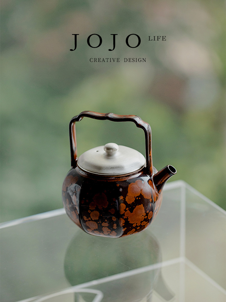 Jojo's L. PD Чайник с рисунком ладони, серебряный, с семенами перилли, восемь квадратных метров, с петлевой ручкой, керамический, одинарный, с ситечком, каштаново-коричневый