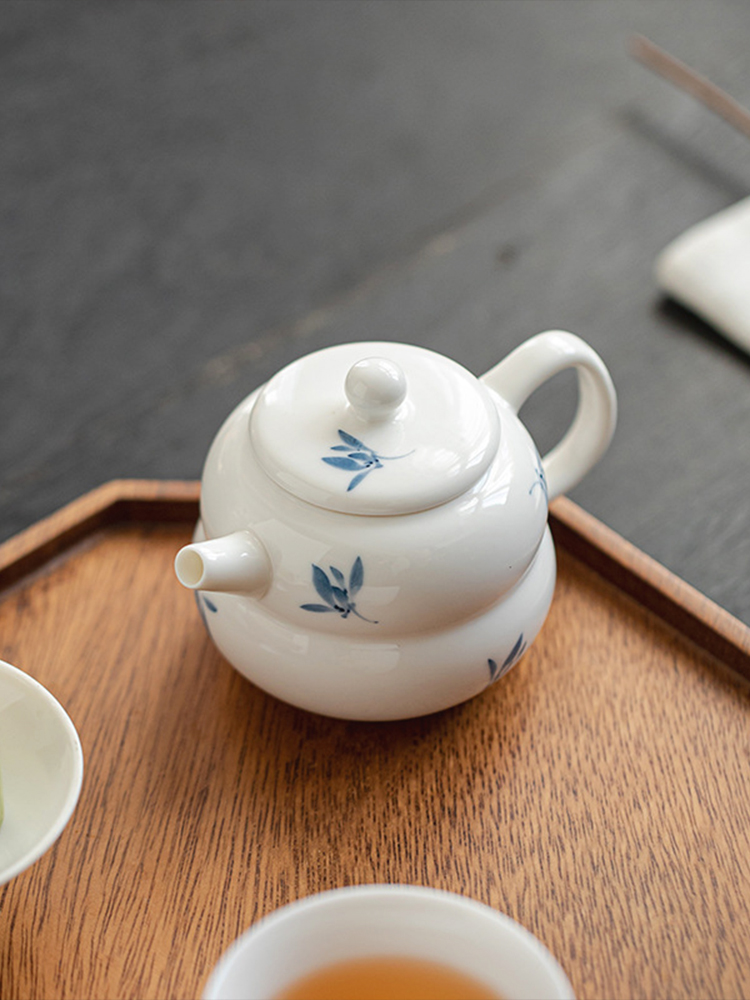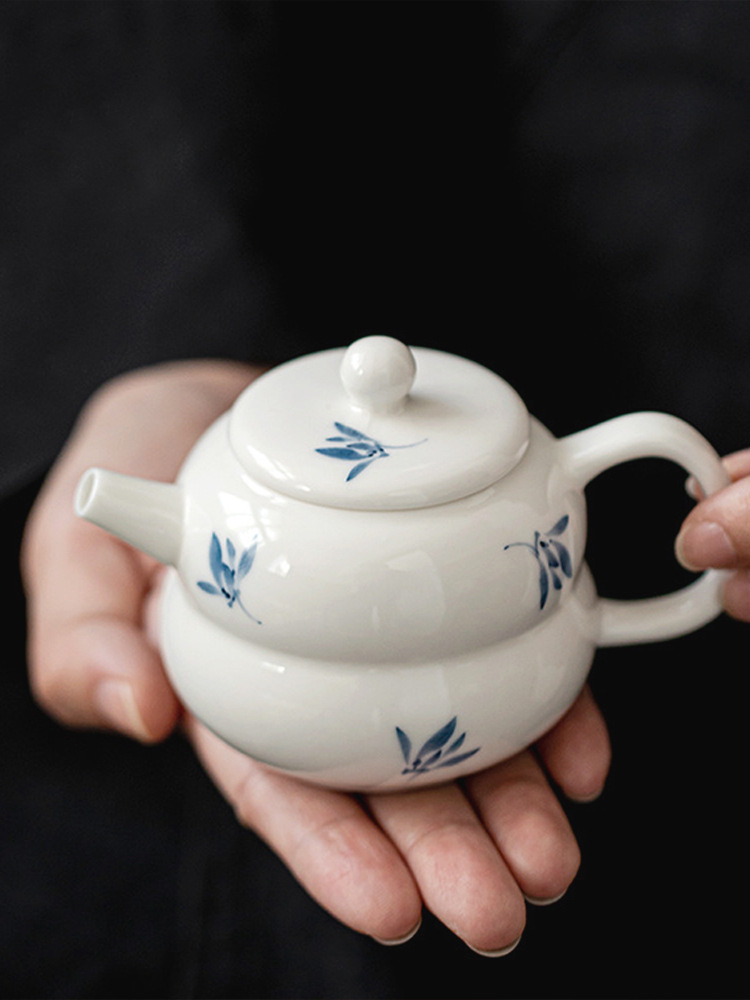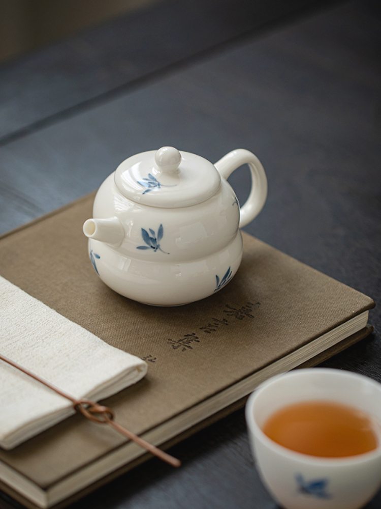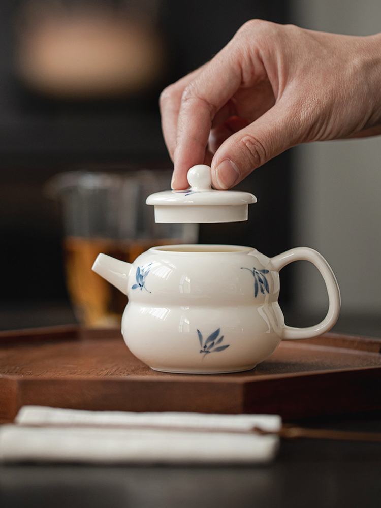 Jojo's L. Pd. Ziquan Stream. Белый фарфоровый чайник ручной росписи с орхидеей-бабочкой, китайский | Far-Sighted