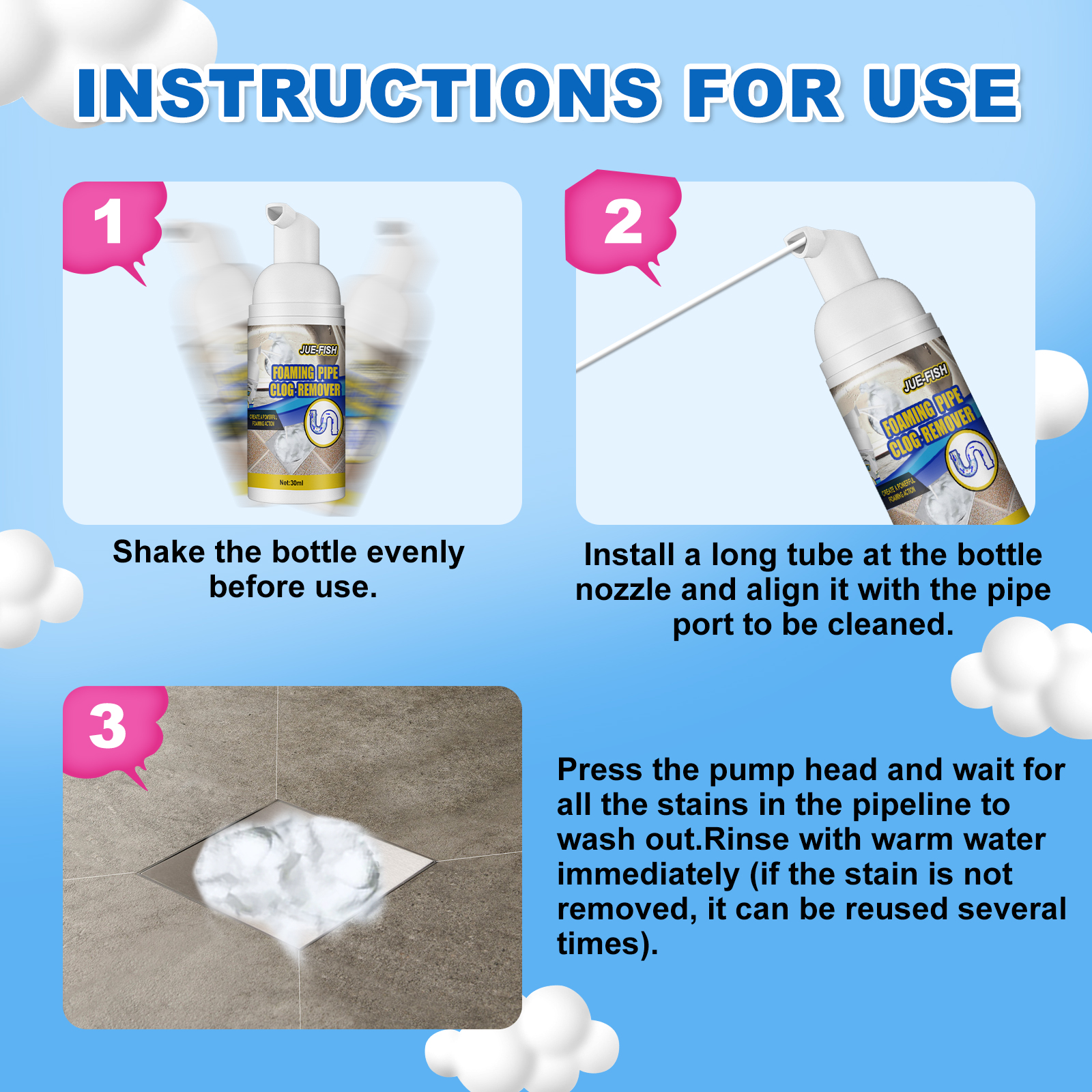 Jue-Fish Мощное пенное средство для прочистки труб: Устраните засоры и запахи, восстановите проходимость