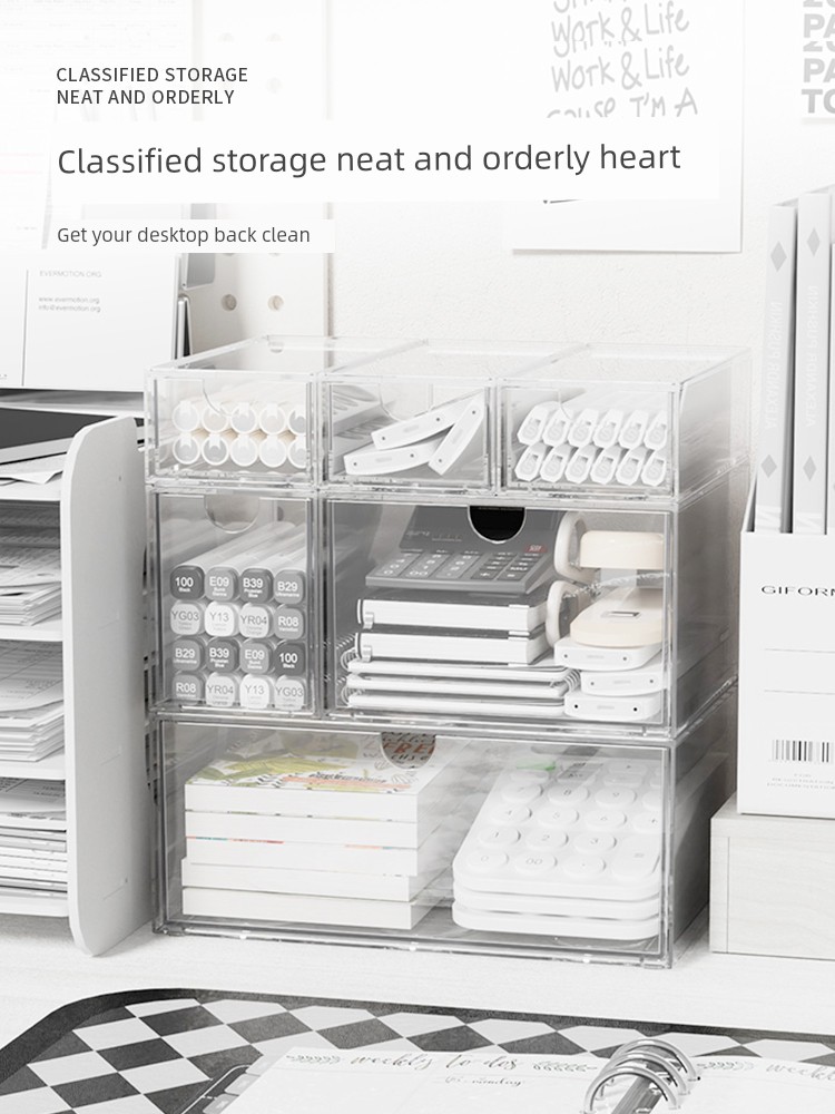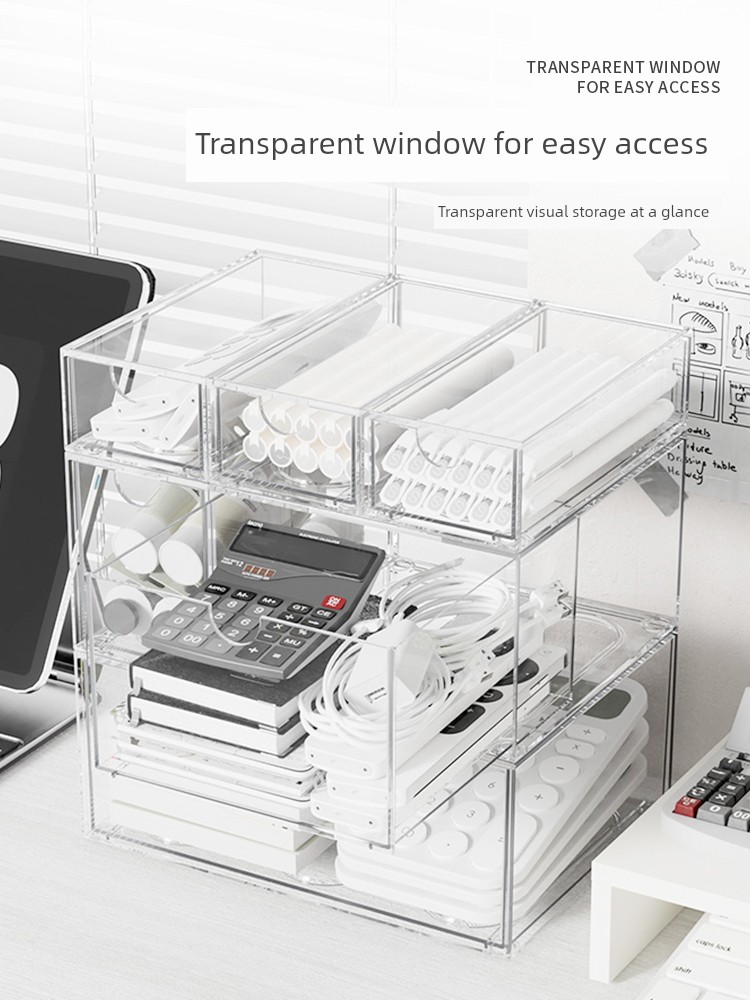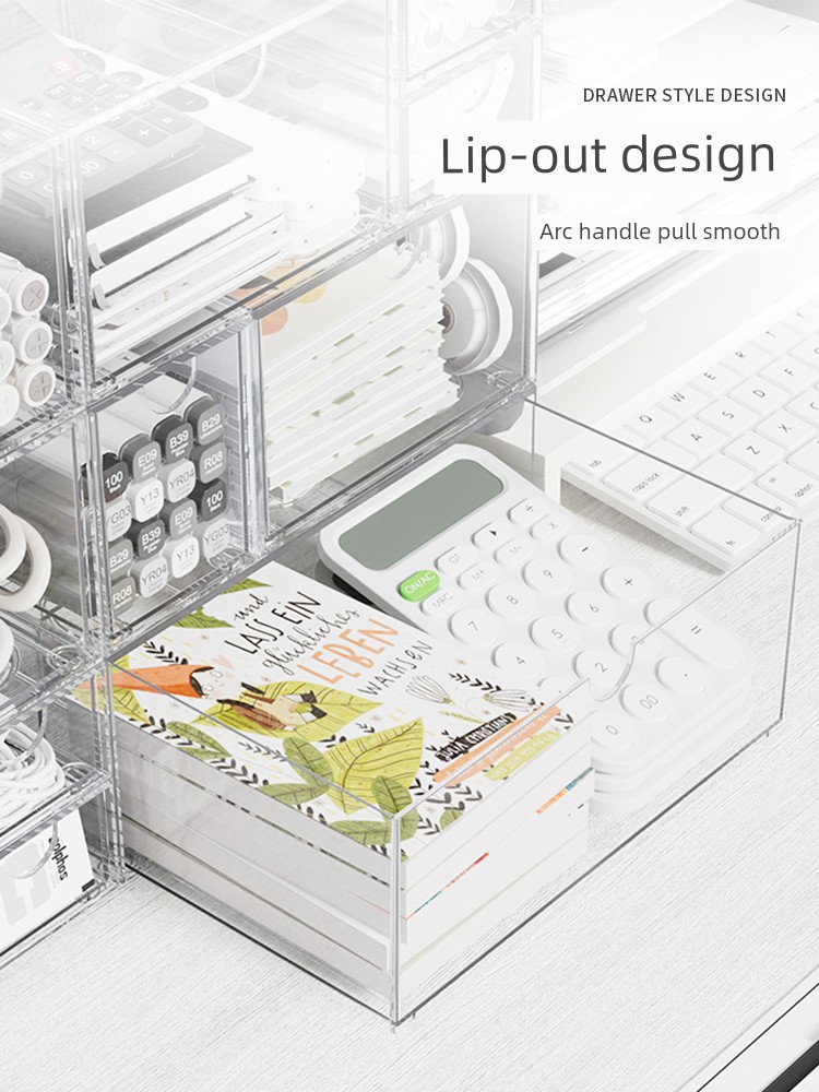 Настольная коробка для хранения Jujiajia, выдвижной ящик, прозрачная, для офиса, канцелярские принадлежности, косметическая полка