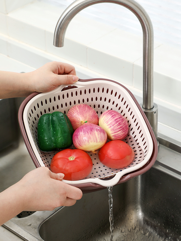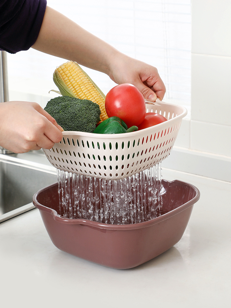 Дуршлаг Jujiajia, таз для мытья, двойной, однотонный, квадратный, для мытья фруктов, пластиковый, скандинавский стиль, набор из трех предметов, корзина для хранения
