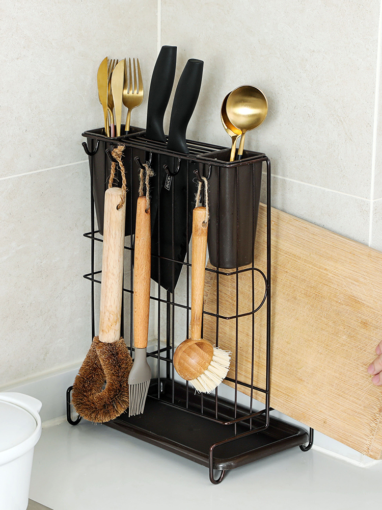 Jujiajia Стойка для ножей, интегрированная стойка для разделочных досок, разделочная доска, палочки, ложка, кухонная посуда, многофункциональная стойка для хранения, сливная стойка