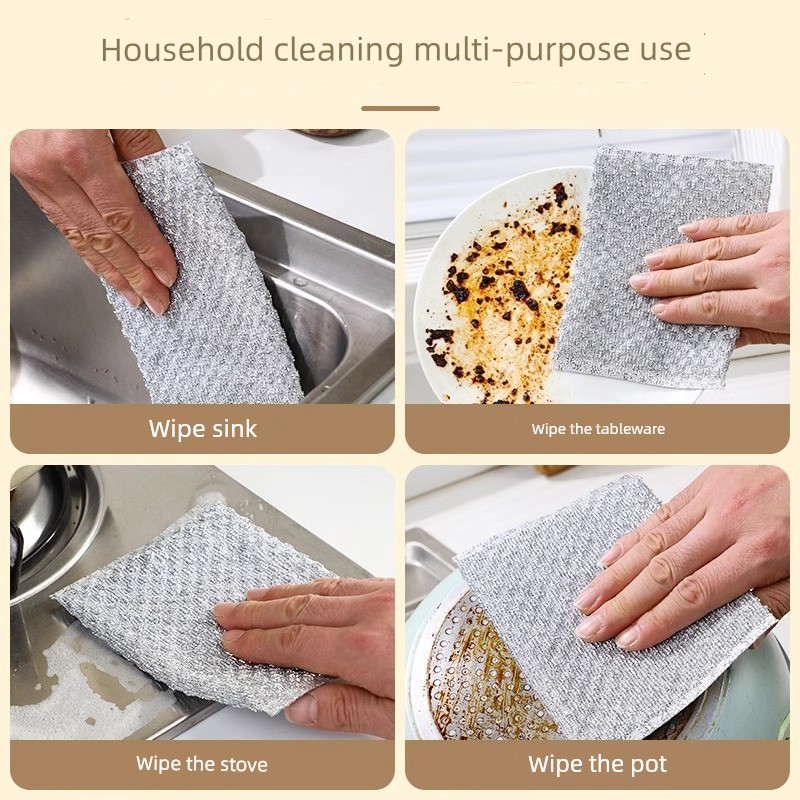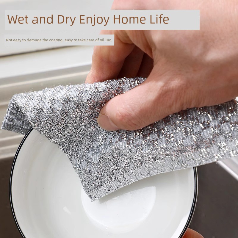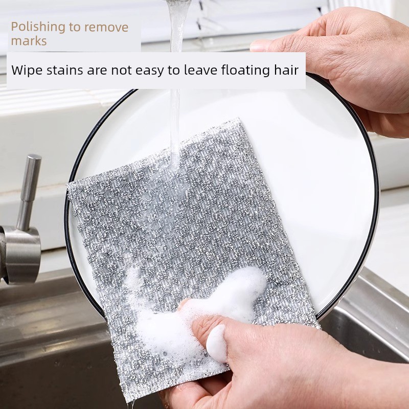 Jujiajia Steel Wire Dishcloth Non-Stick Oil Kitchen Special Cleaning Silver Wire Rag Double-Sided Abrasion Resistant Fabulous Pot Cleaning Tool