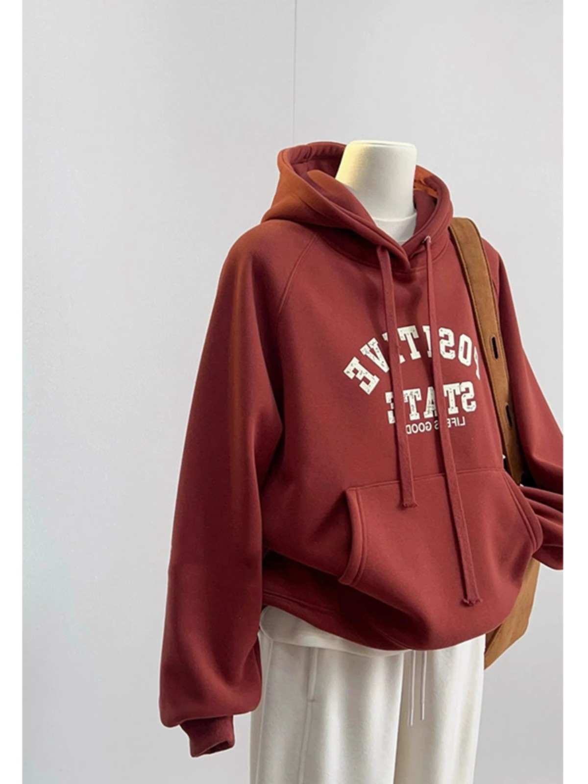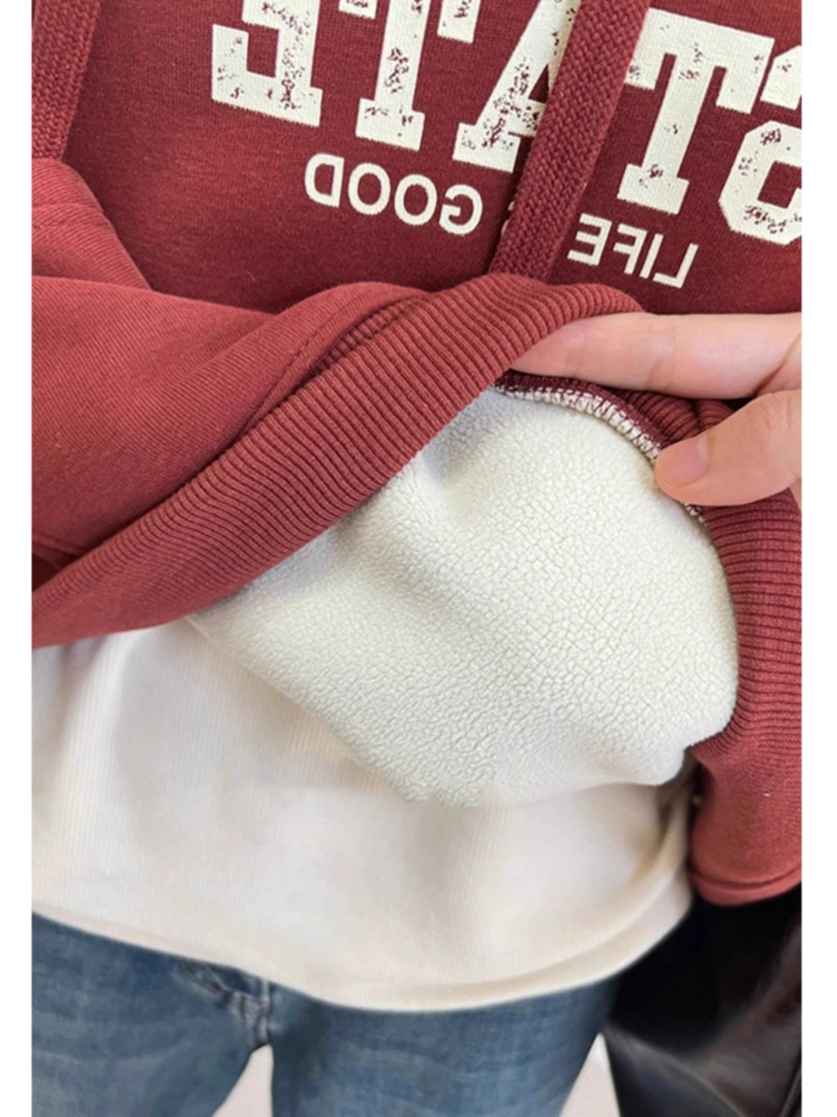 Повседневная универсальная молодежная худи с начесом в корейском стиле, женская весенне-осенняя, в западном стиле, модные буквы, утолщенный капюшон, модный топ