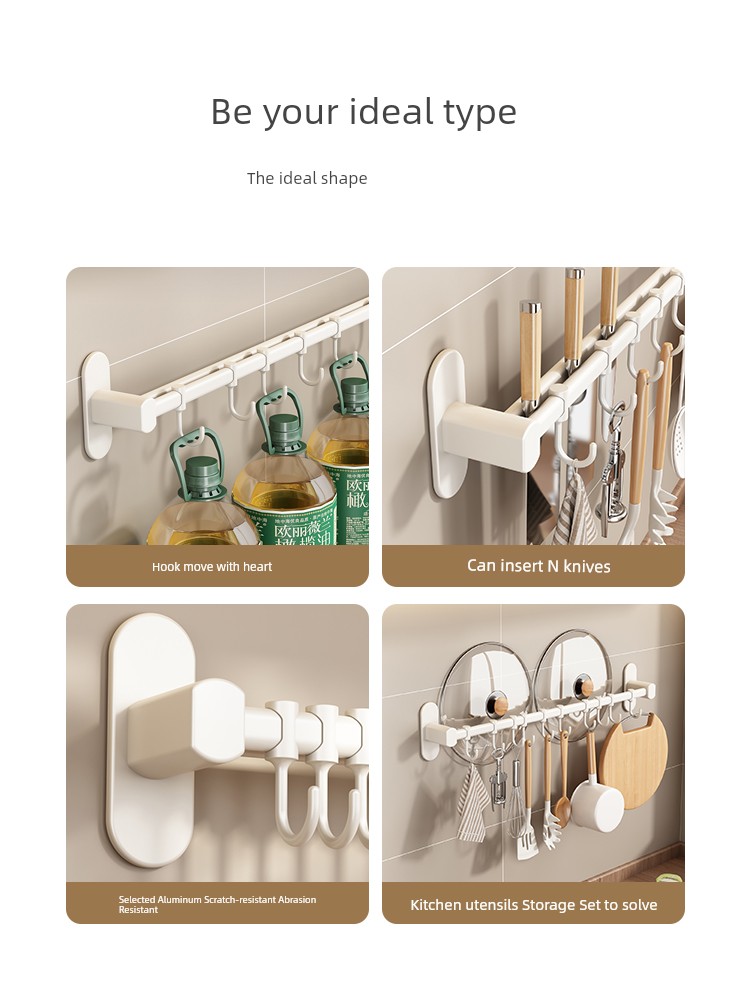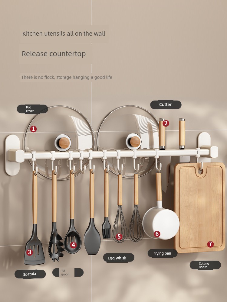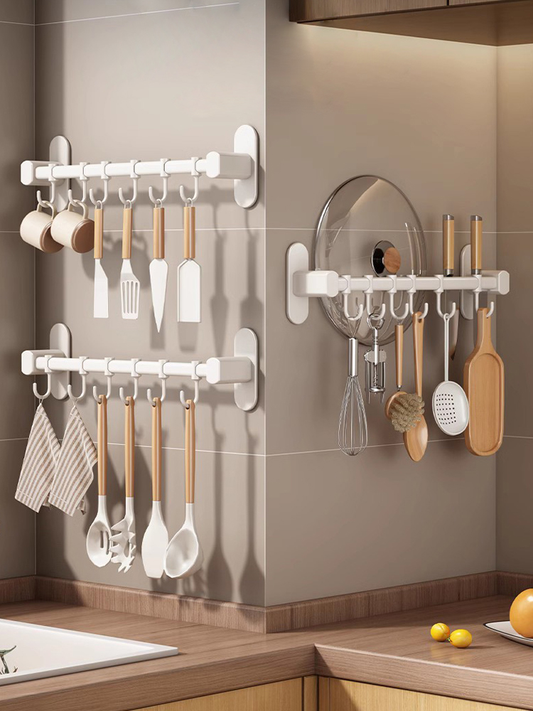 Кухонный Крючковый Стеллаж Без Сверления Подвесной Стержень для Кухни для Подвешивания Лопаток Ложки и Лопатки Настенный Органайзер