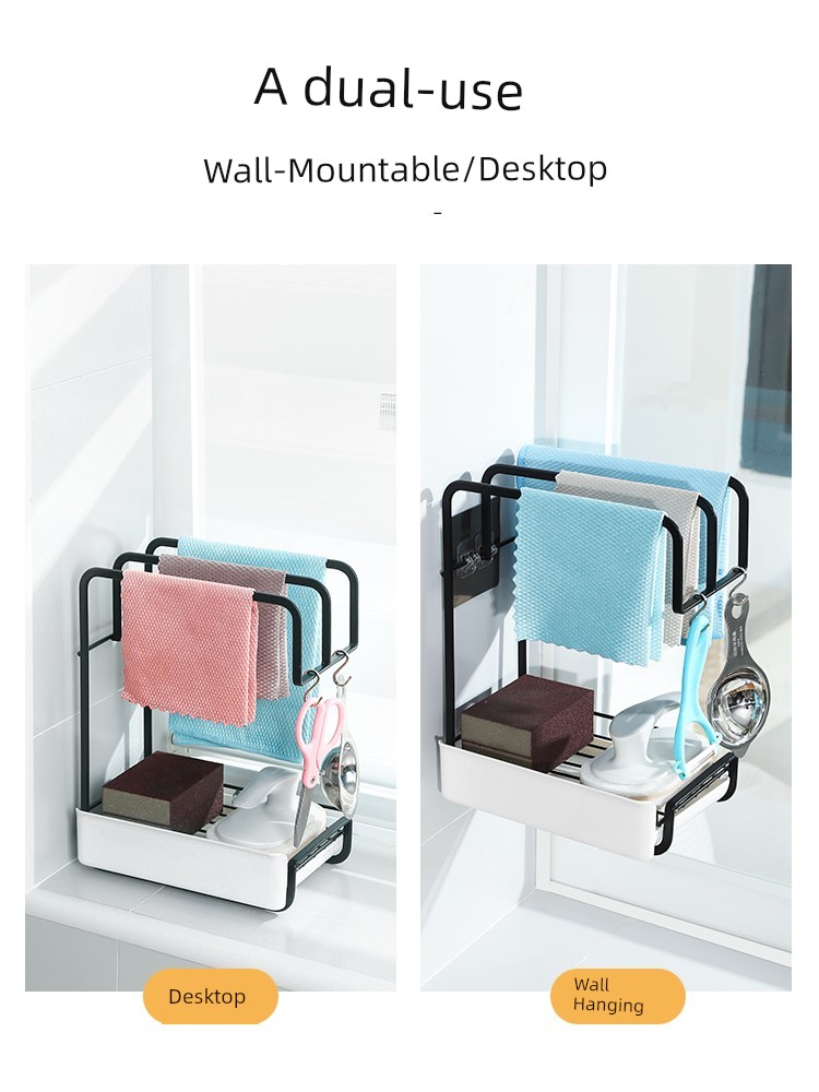 Кухонная полка для хранения, полка для тряпок, сливная полка для раковины, без сверления, настенная, для губок, стальной проволочной щетки, для посуды, полотенец