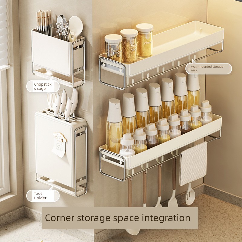 Кухонная настенная полка, многофункциональная полка для специй из нержавеющей стали, настенная полка для хранения приправ