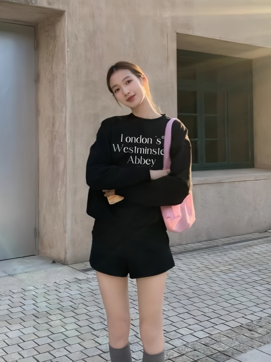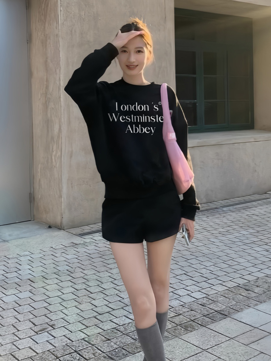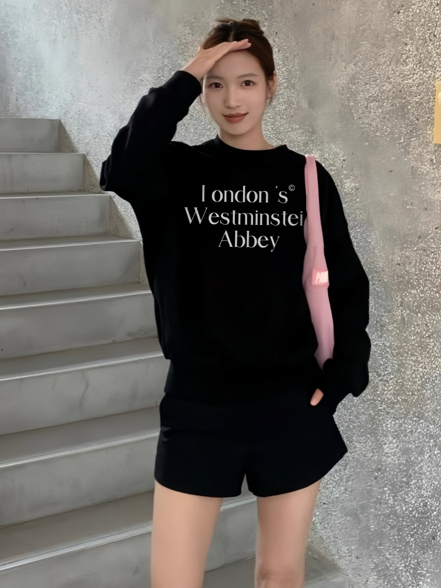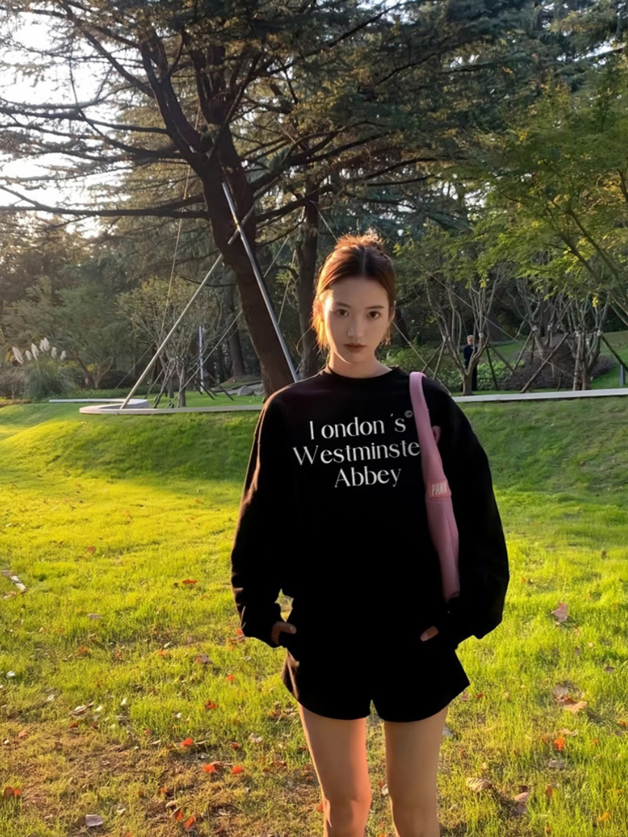 Стильная кофта в корейском стиле с принтом из букв, нишевая, женская, 2025, весна-осень, ленивый стиль, черная толстовка