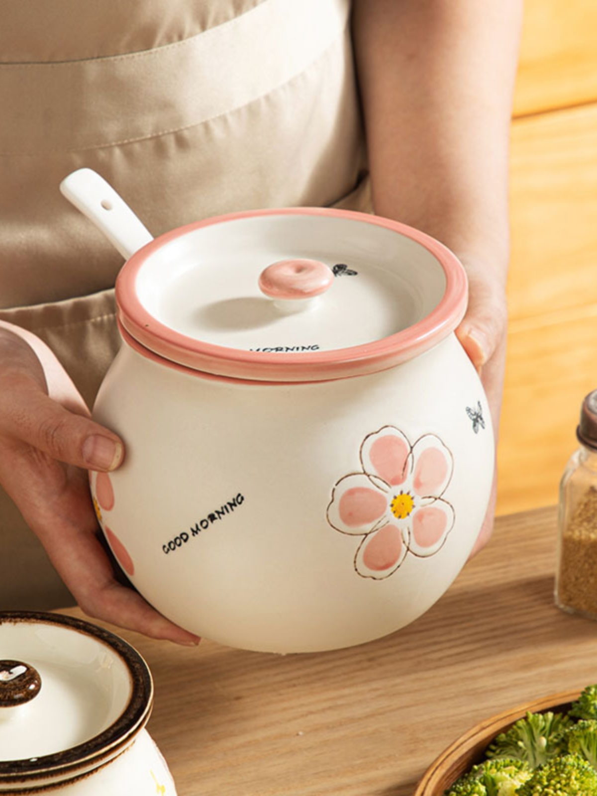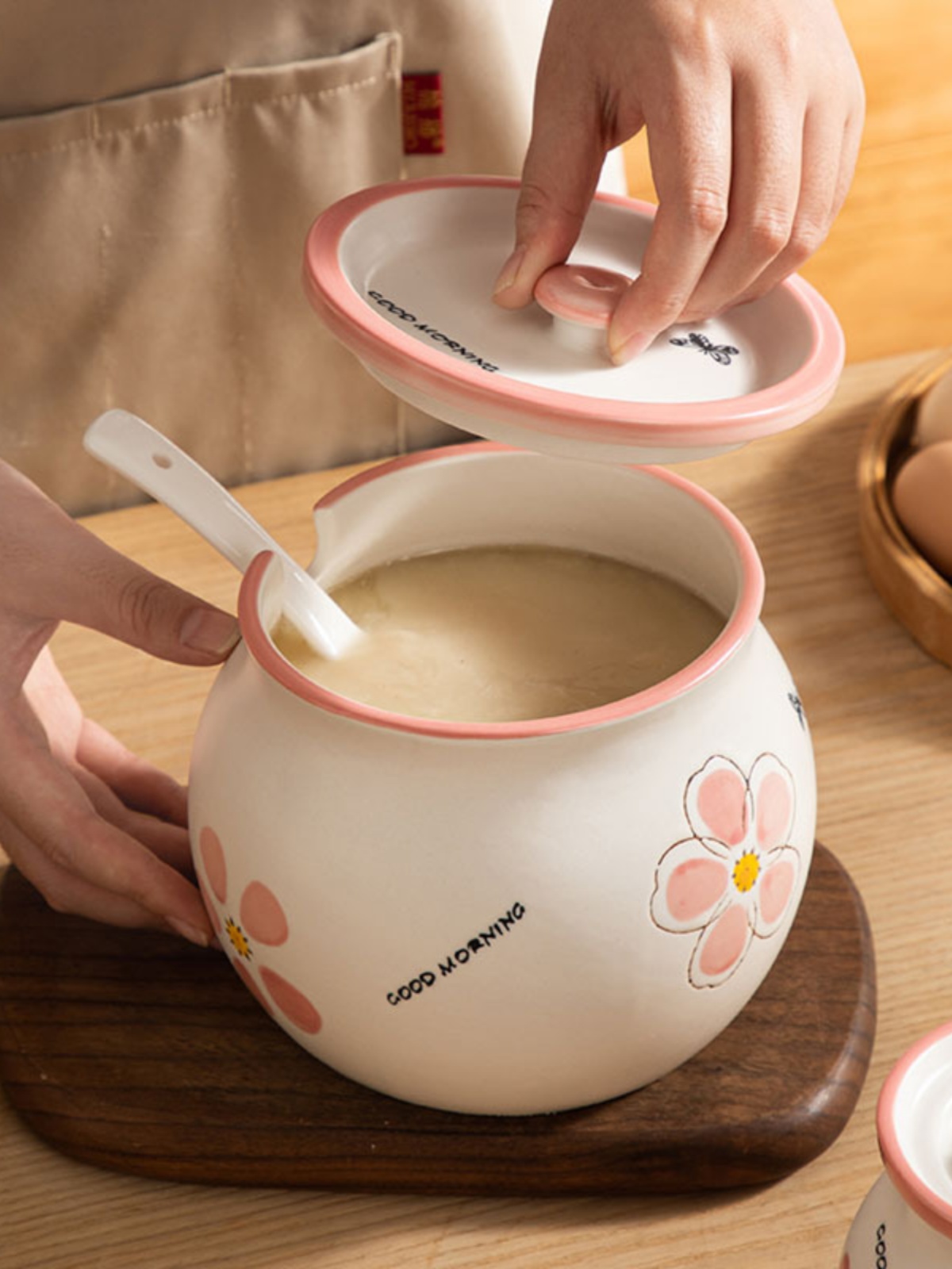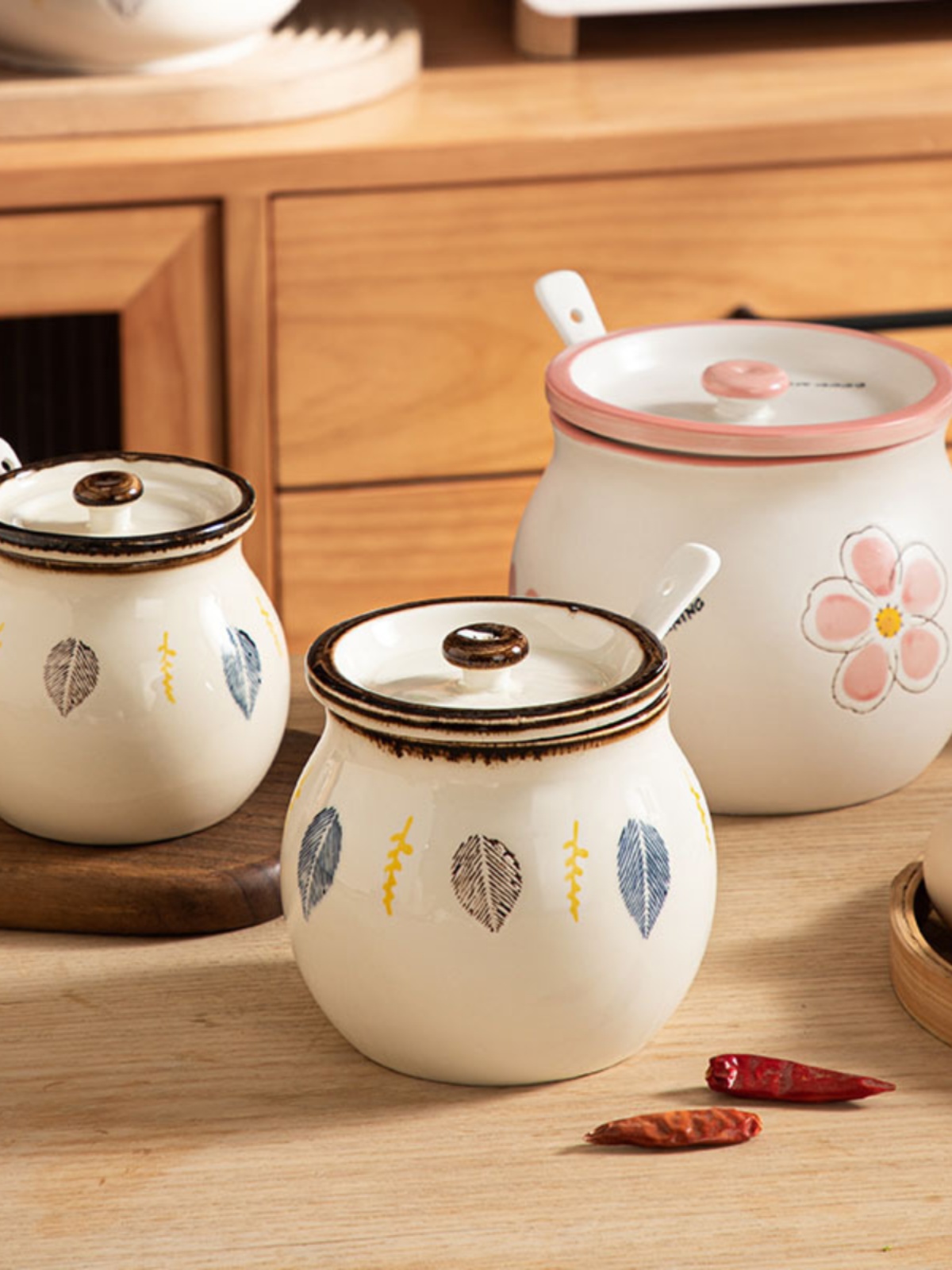 Банка для Жира с Крышкой и Ложкой для Дома Керамическая Японская Банка для Хранения Устойчивая к Высоким Температурам Милая Банка для Приправ Банка для Жира