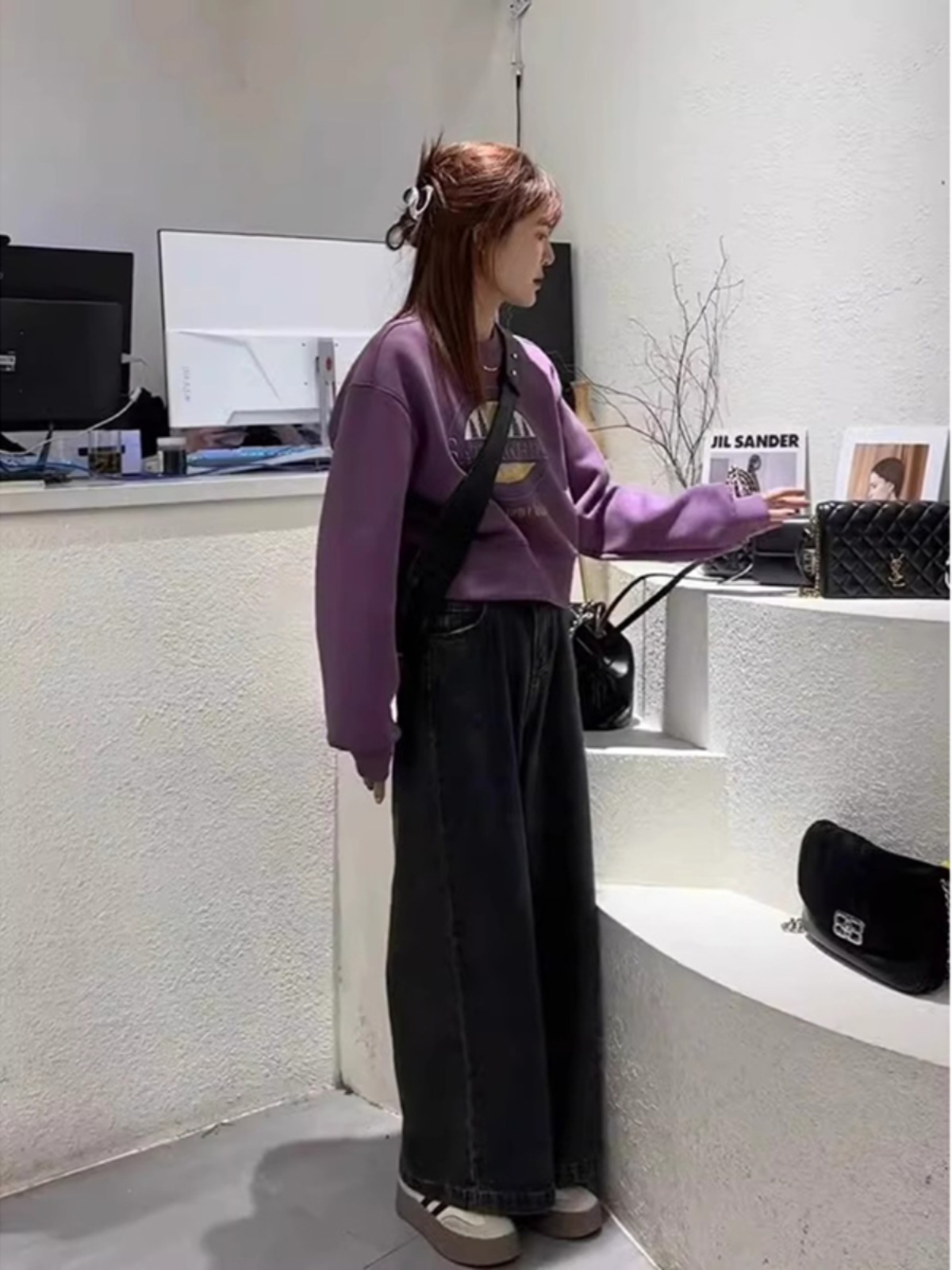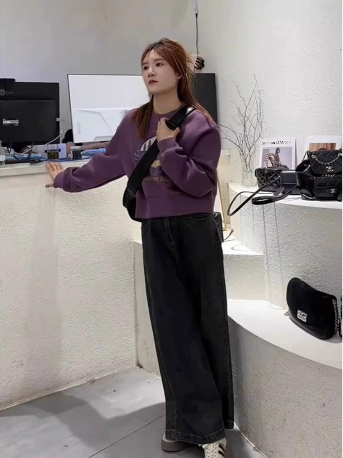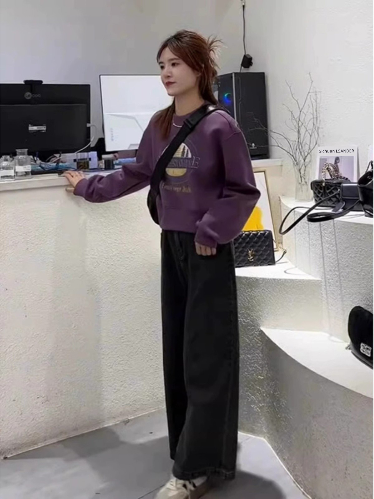 Пуловер с буквенным принтом, короткий, фиолетовый, флисовый, женский, весна и осень, тонкий, нишевый стиль, популярный в этом году, красивый, свободный, повседневный топ