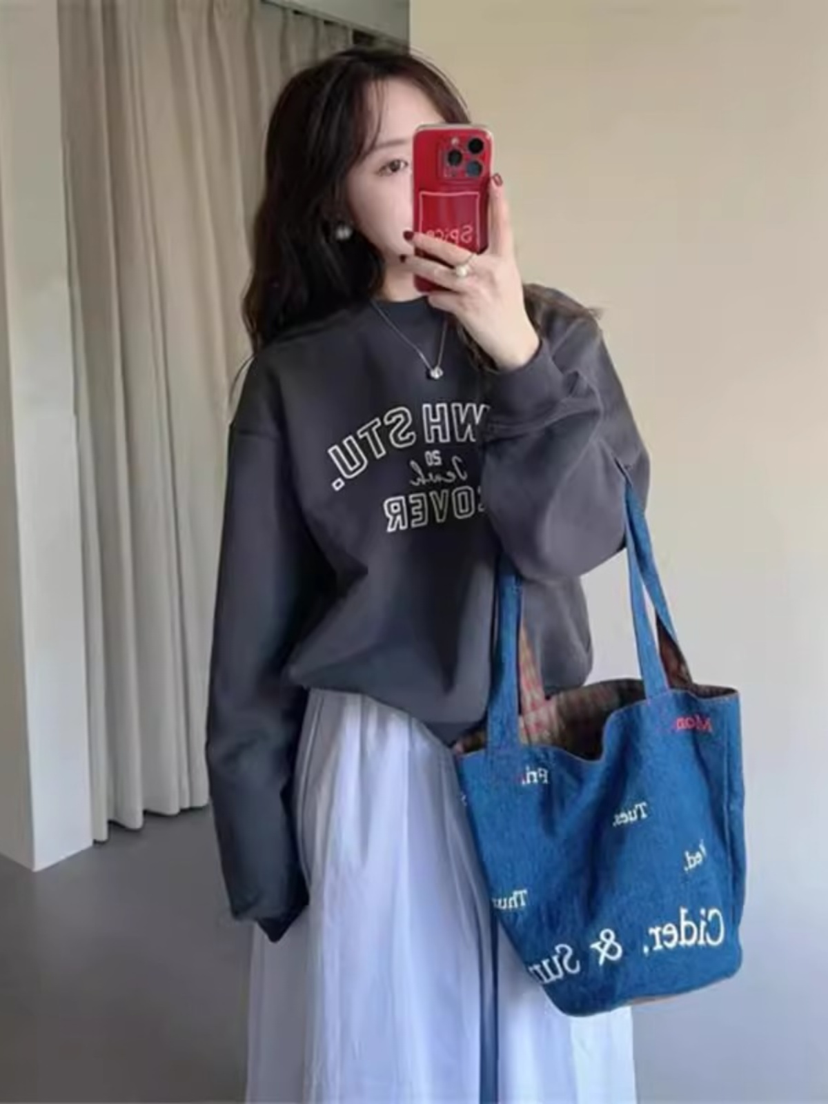 Свитшот с надписью пуловер для женщин Весна и Осень 2025 Новое поступление С подкладкой из флиса, утолщенный, стильный, нишевый, свободный, универсальный, повседневный топ