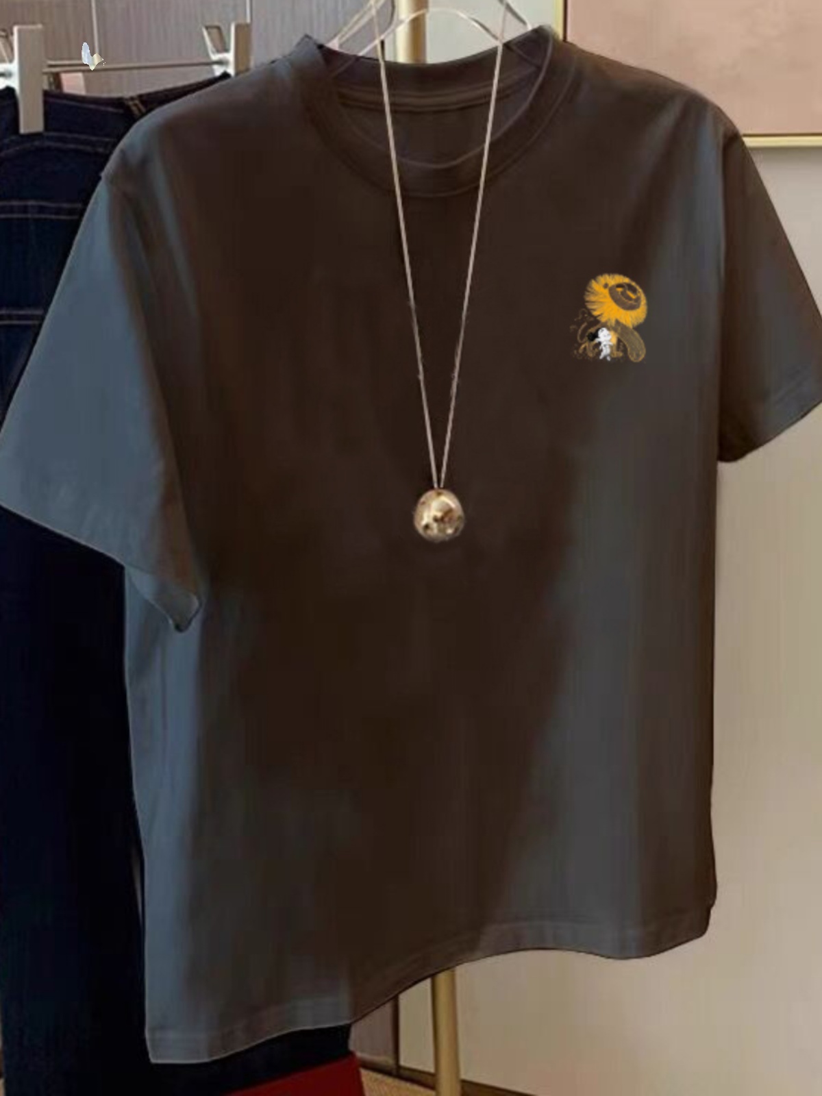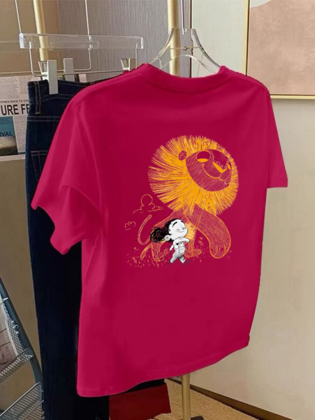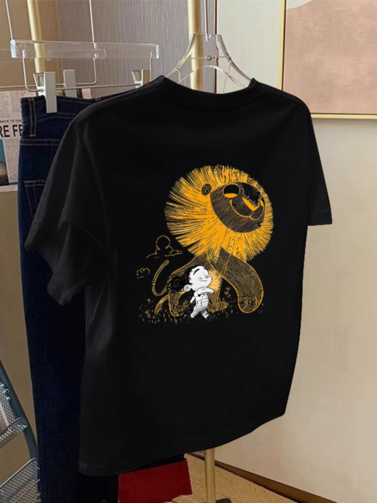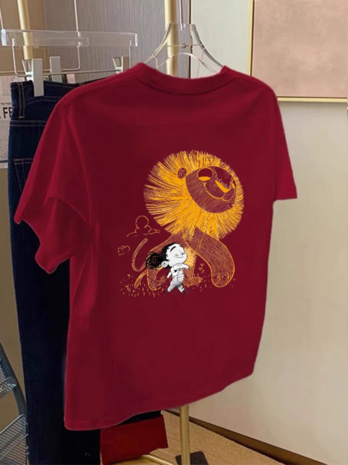 Футболка с коротким рукавом со львом, женская, летняя новинка 2025, оверсайз, свободная, в западном стиле, универсальная, с акцентом на плечи, в стиле Гонконга, шикарный топ, модная