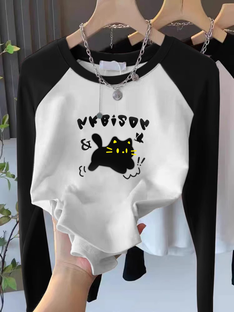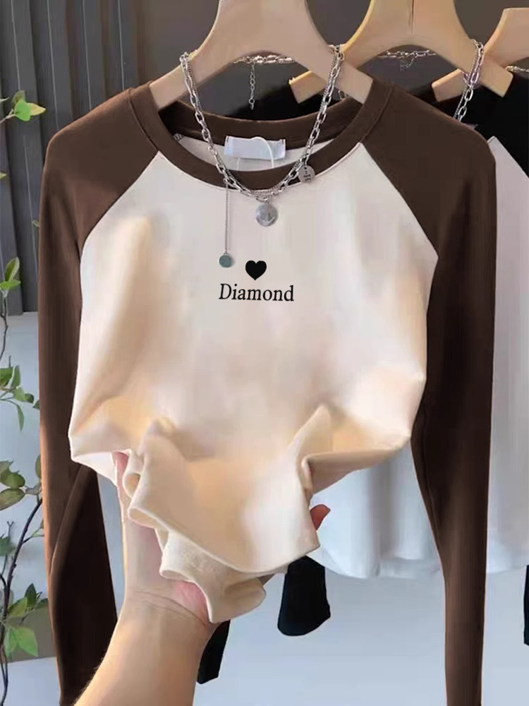 Футболка с длинным рукавом, женская, с рукавом реглан, контрастный цвет, внутренняя одежда, весна и осень, рубашка-подкладка, чистый хлопок, облегающий, модный, приталенный топ