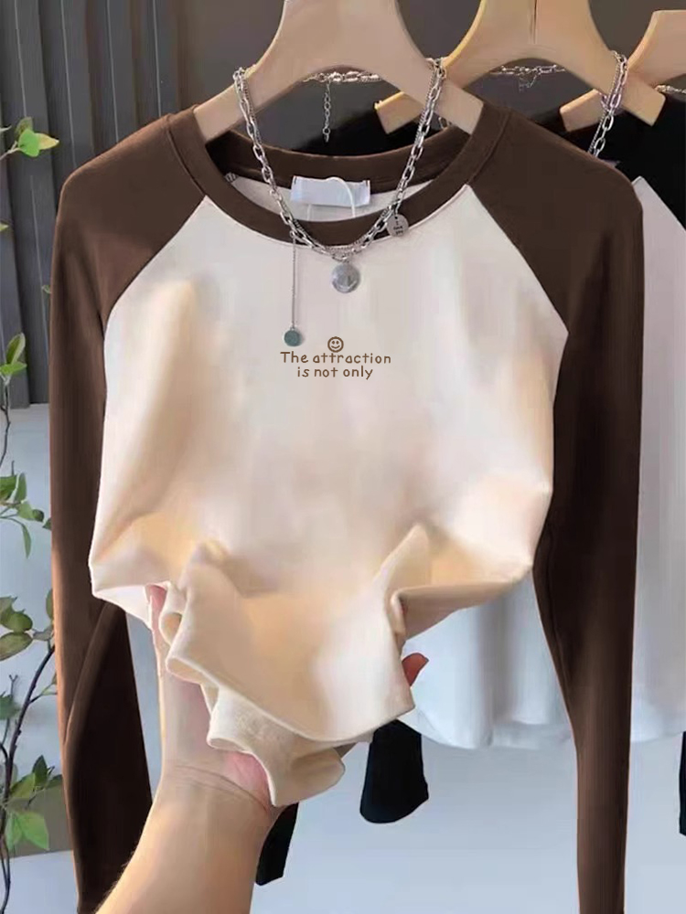 Футболка с длинным рукавом женская, реглан, нижняя одежда, весна-осень, нижняя рубашка, 2025, чистый хлопок, стройная, модная, стройнящая, короткий топ