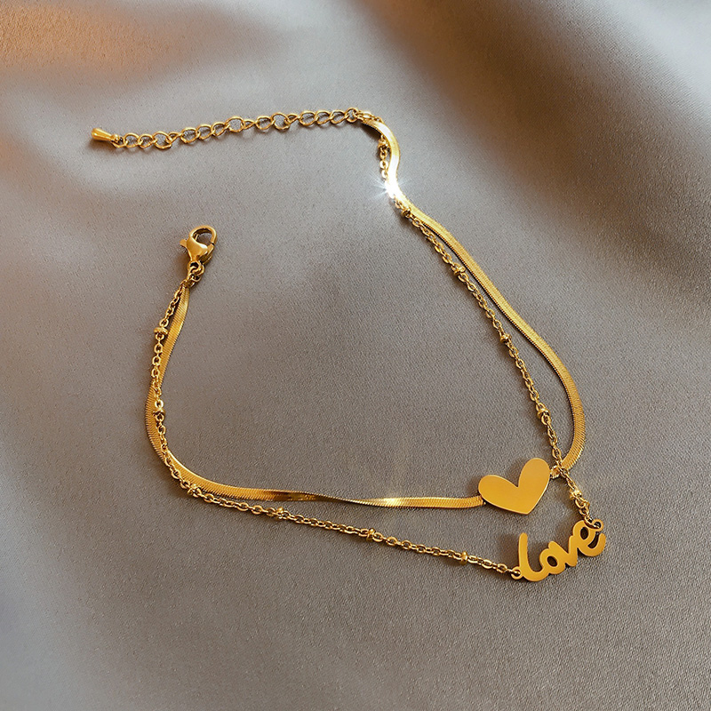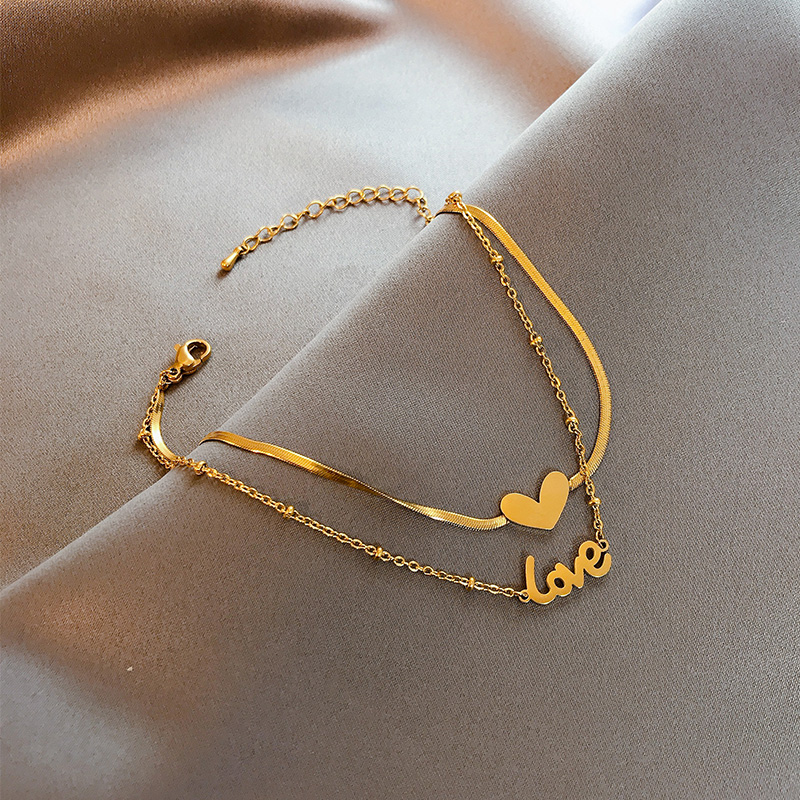 Браслет на щиколотку "Любовь" в корейском стиле, простой и милый, для девочек, с двумя кругами