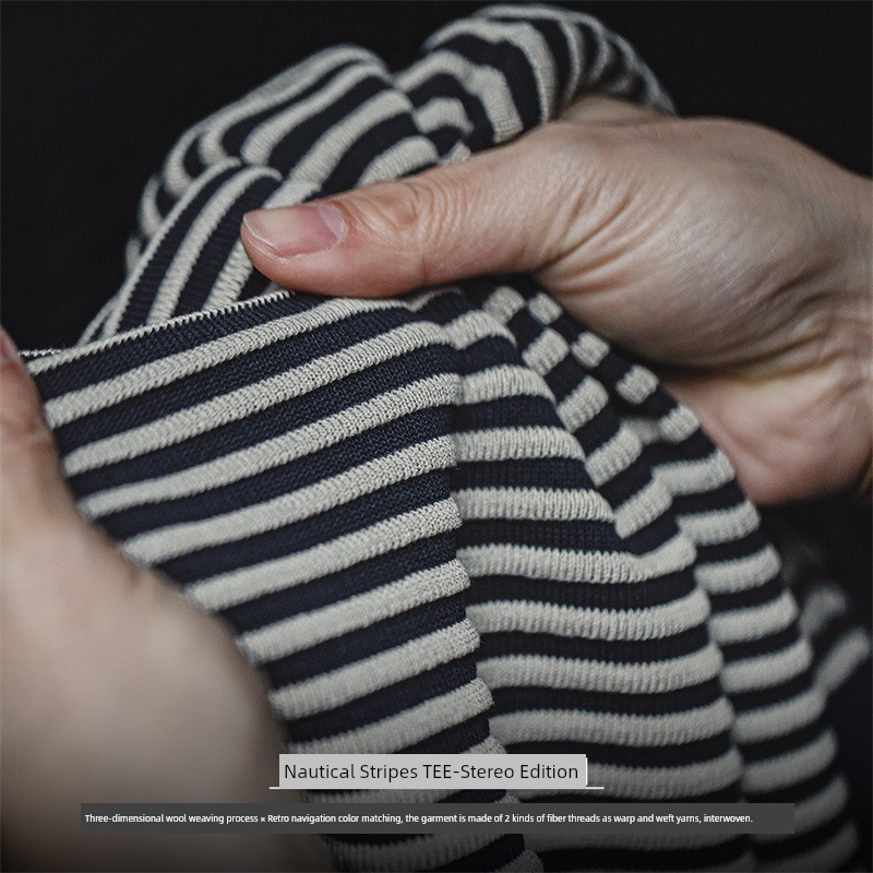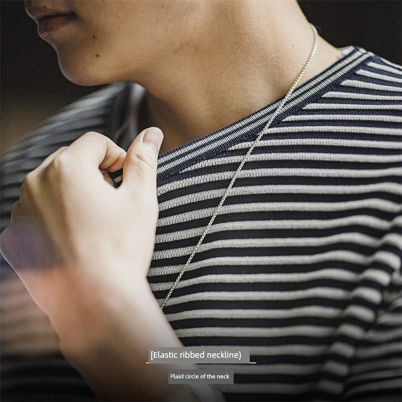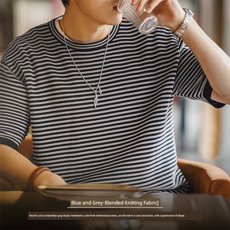 Парка Madden Американский ретро вязание в полоску контрастный цвет футболка с коротким рукавом круглый вырез повседневная футболка с половиной рукава в темно-синюю полоску мужская летняя