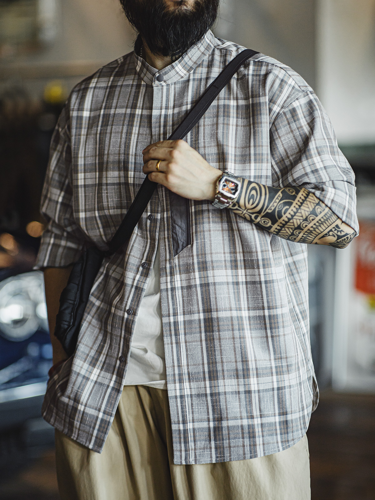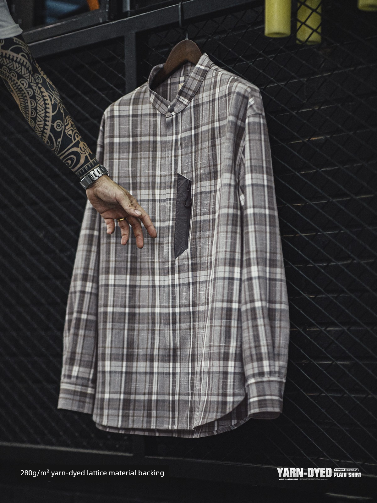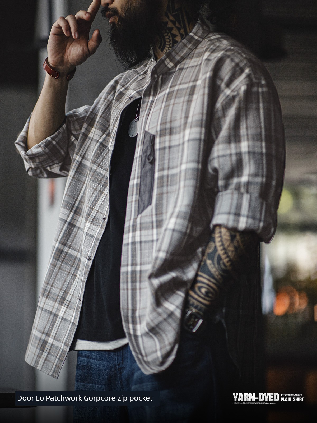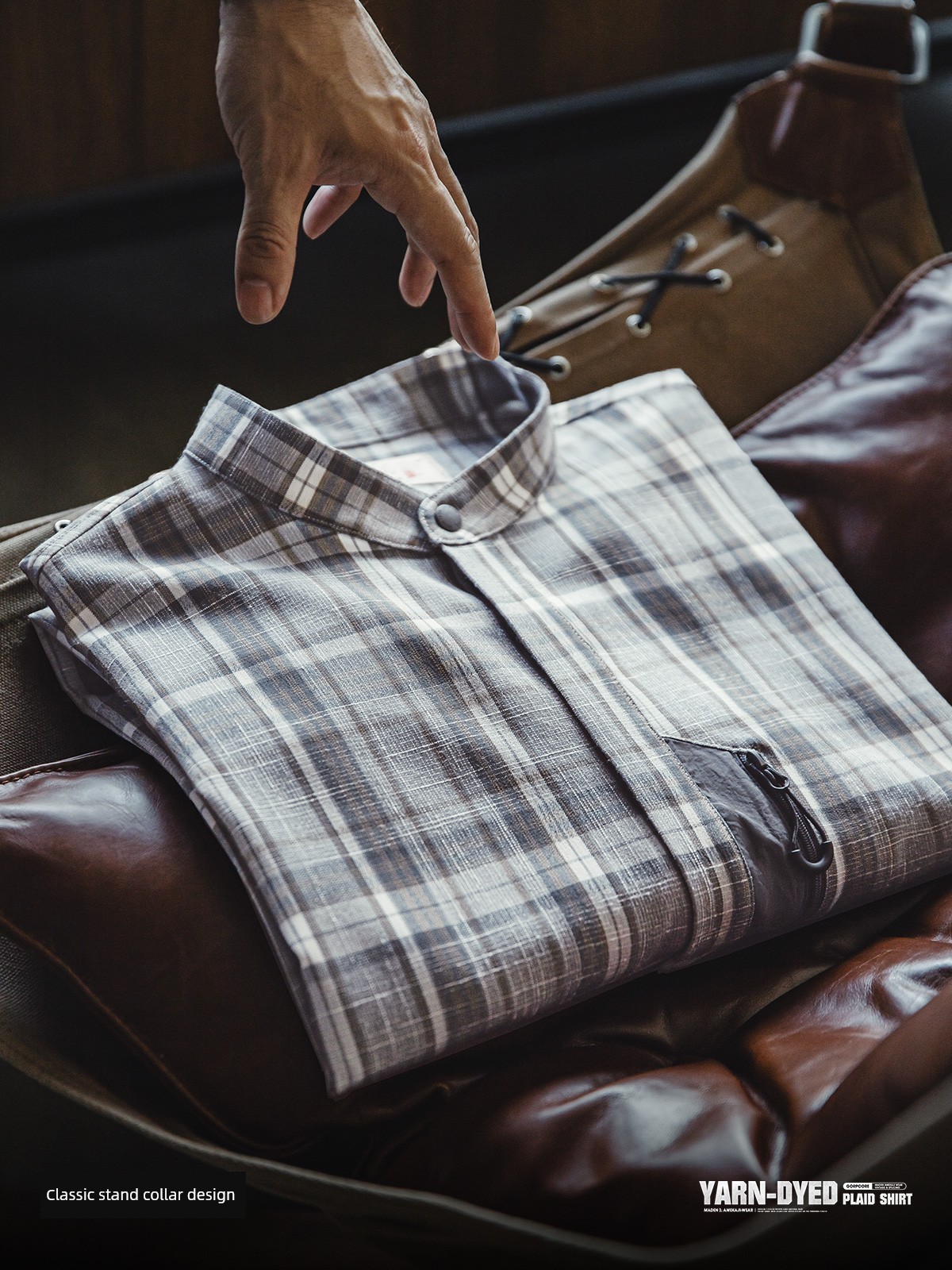 Мужская винтажная рубашка Marden Cargo в клетку с воротником-стойкой