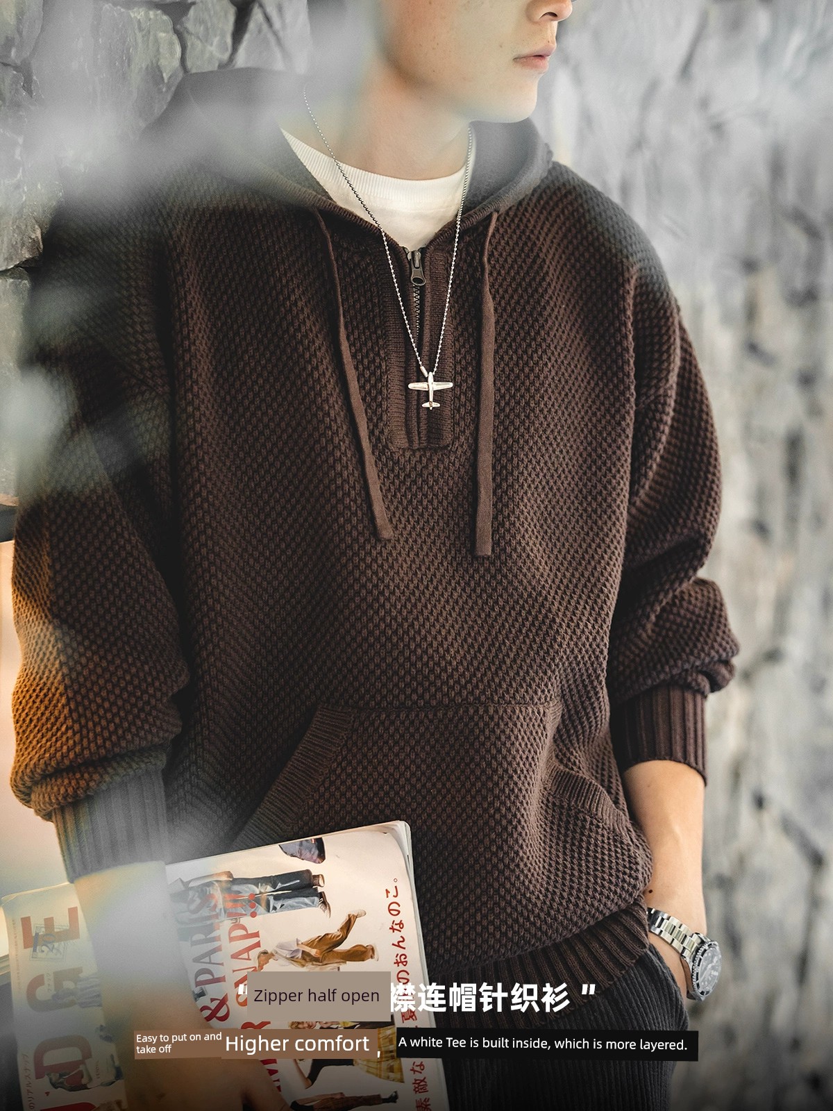 Повседневный трикотажный свитер Marden с капюшоном и объемным трикотажем, парка